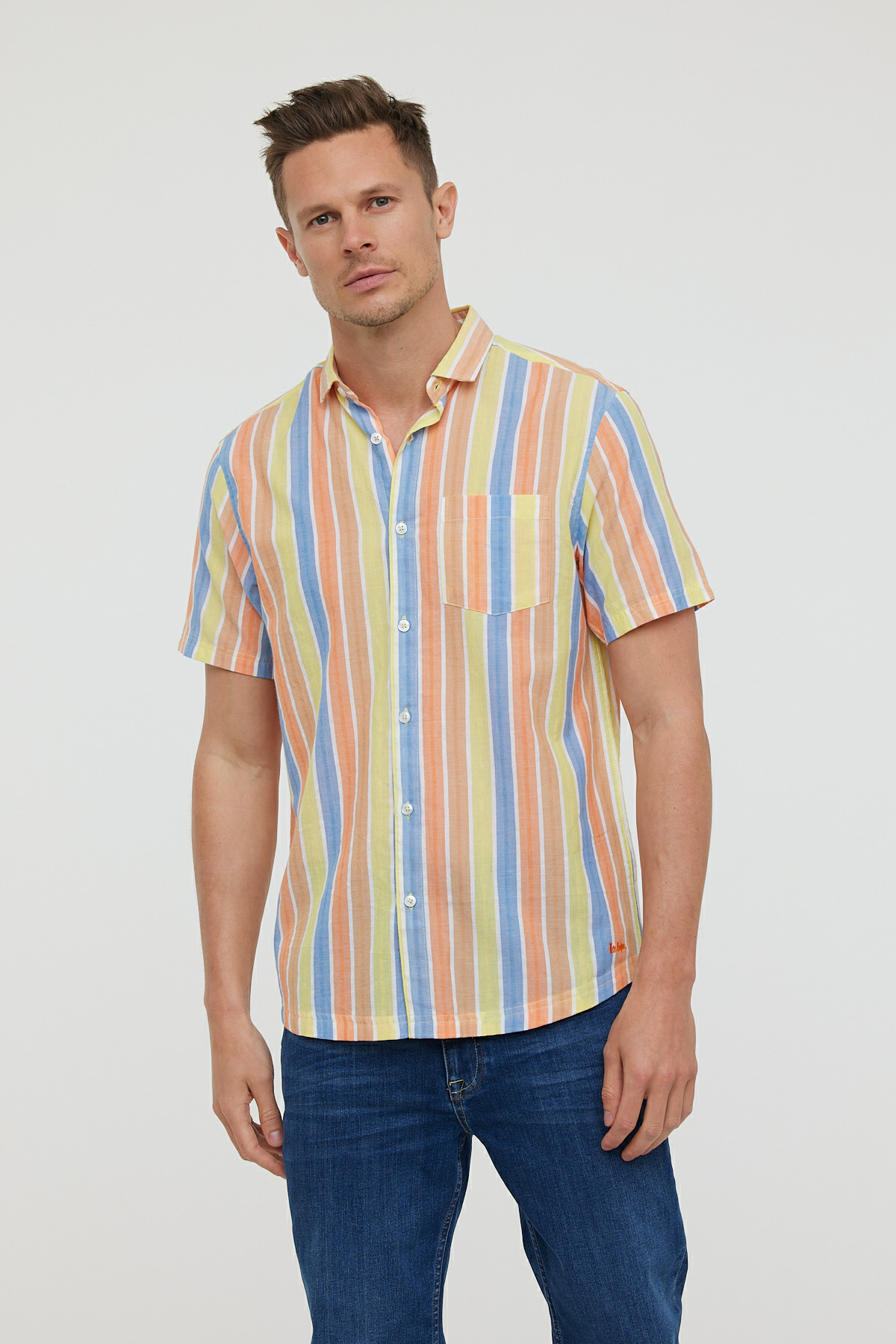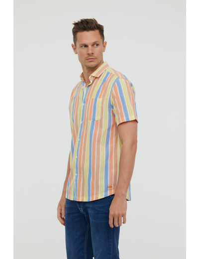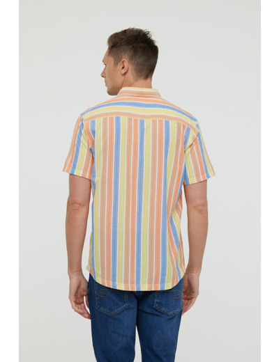 Chemise Rayée En Coton, Manches Courtes, Avec Poche Poitrine Et Broderie Bas De Chemise