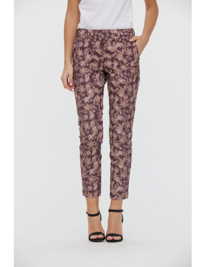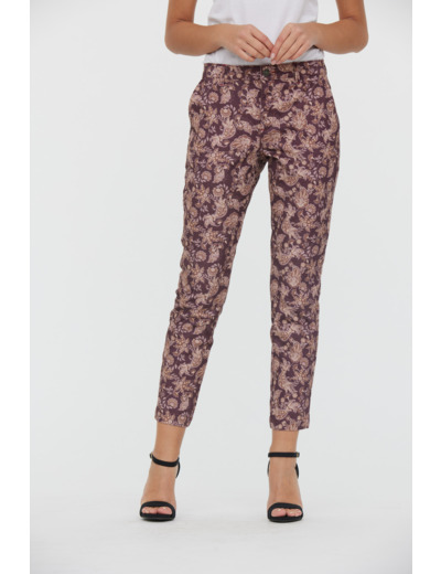 Chino En Tissu Imprimé Allover Fleur, Slim Cropped, Coupe Ajoustée