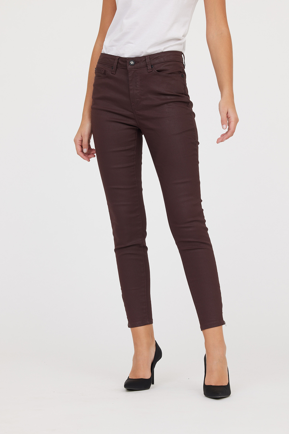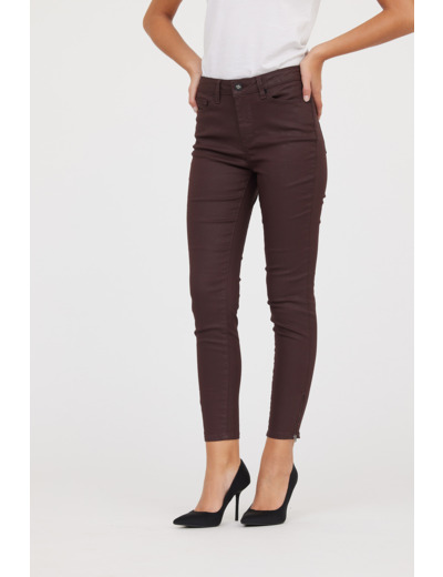 Denim Enduit Skinny Fit Cropped, Jambes Très Ajustées "Effet Seconde Peau", Taille Medium Détail Zip Bas De Jambe
