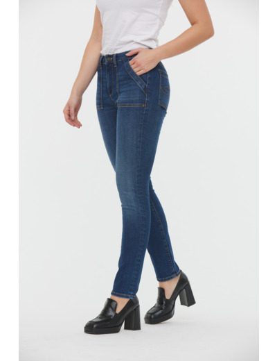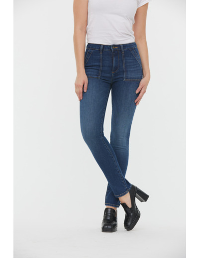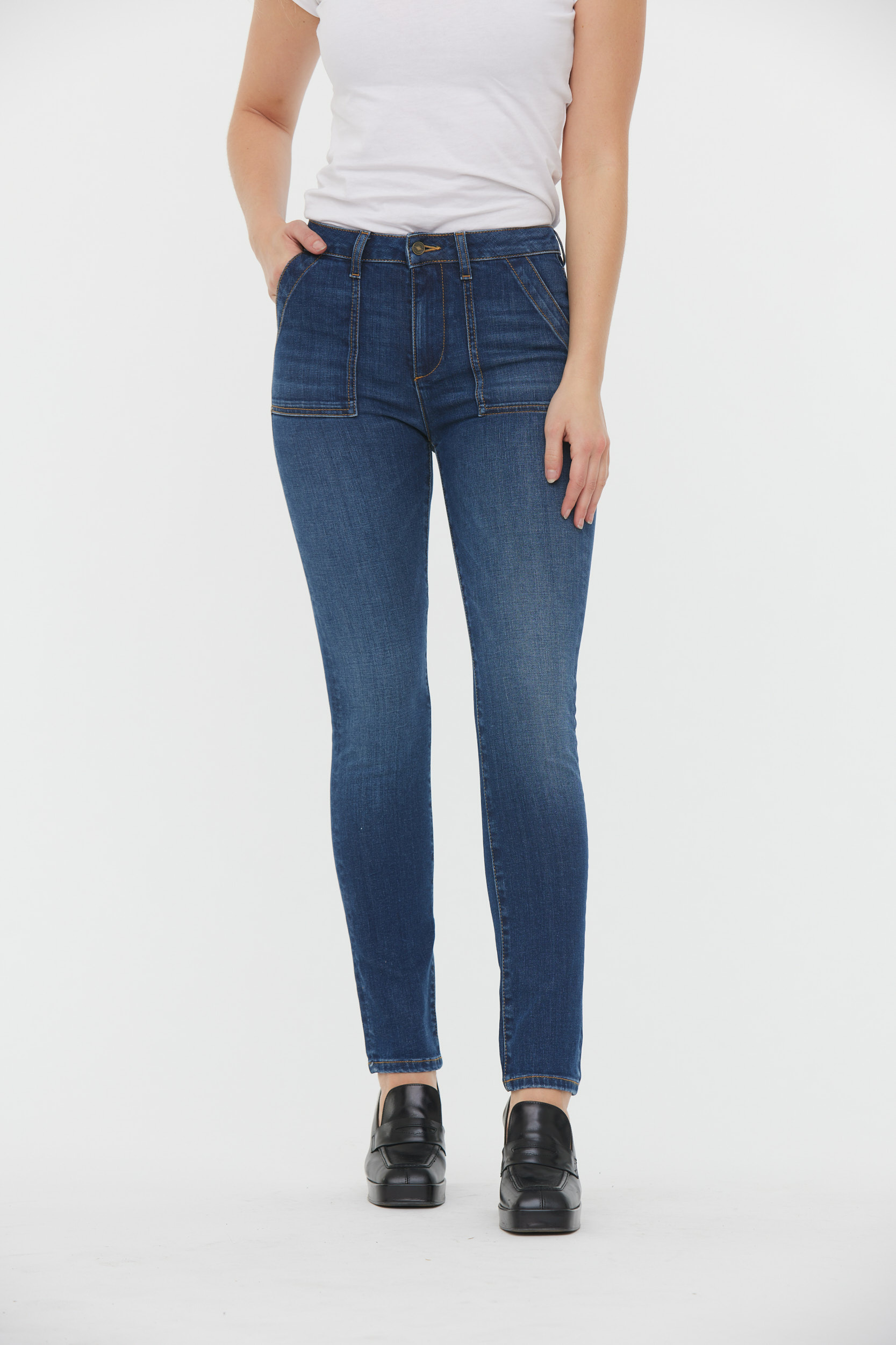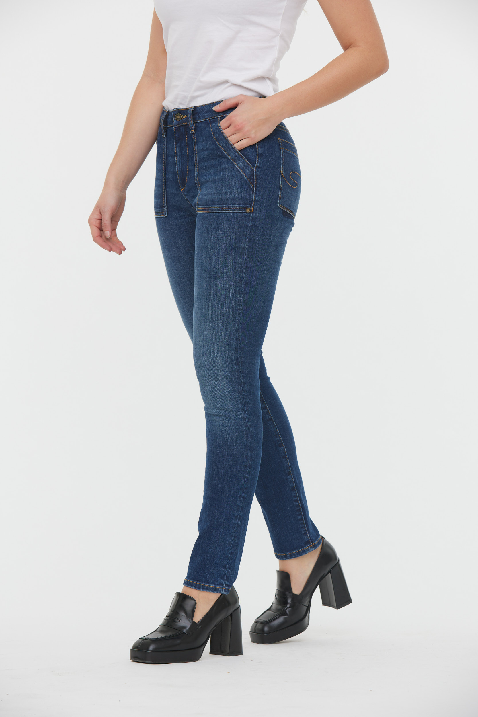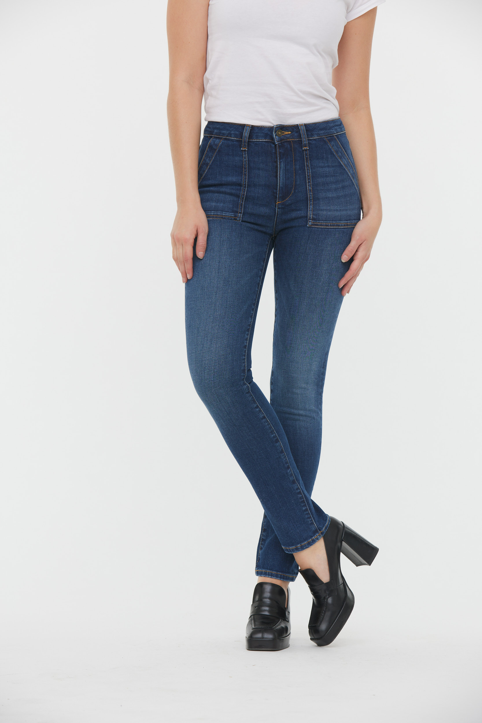 Denim Slim Fit, Jambes Ajustées, Taille Medium Haute , Poches Plaquées
