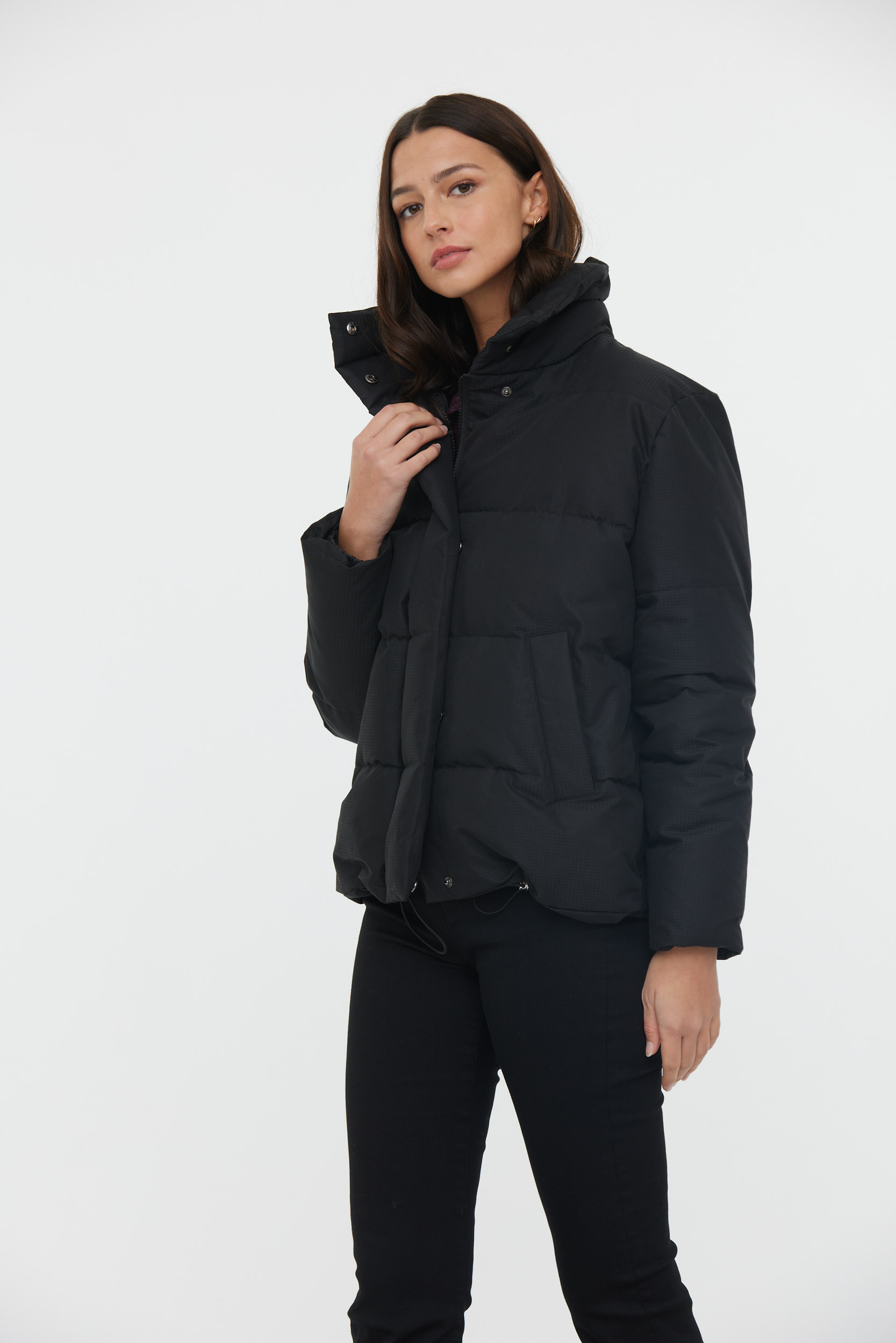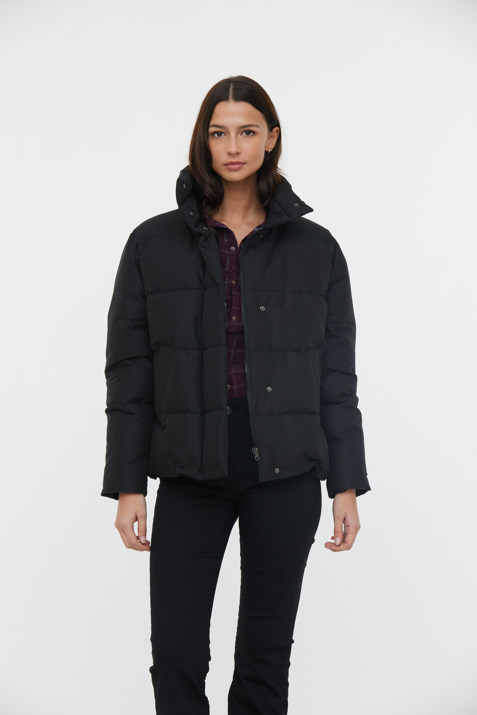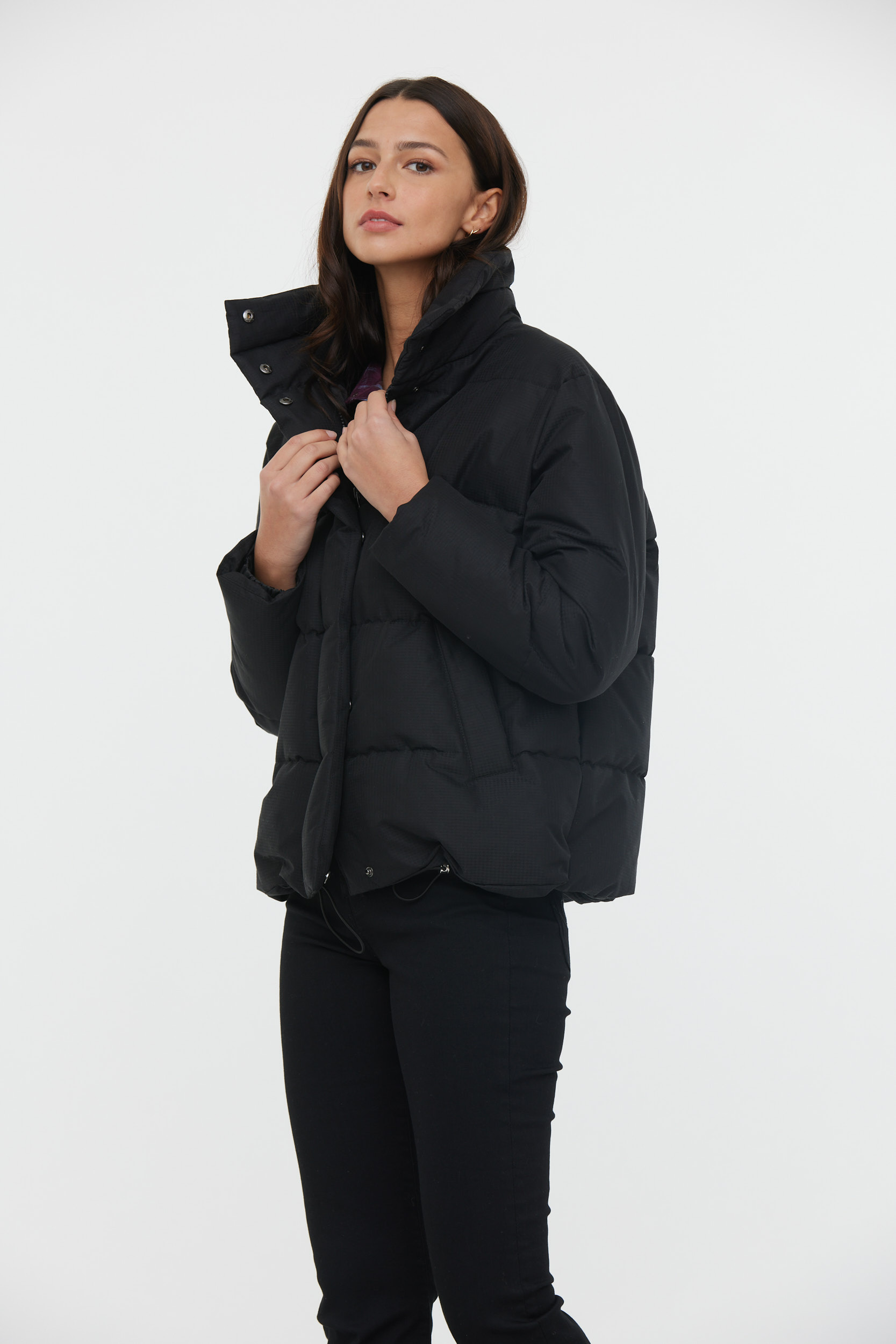 Doudoune «Boxy» Imprimée Carreaux Ton Sur Ton Resserrable En Bas