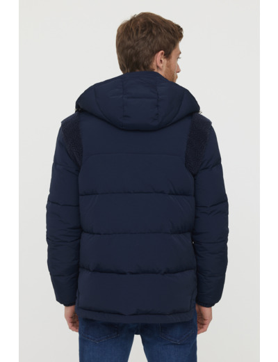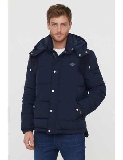 La doudoune Fedio Navy est fabriquée en polyester avec un rembourrage synthétique, assurant légèreté et durabilité. Elle présente une fermeture zippée centrale, deux poches latérales zippées, et un col montant pour une protection renforcée contre le froid.