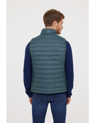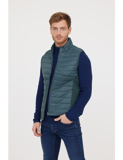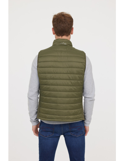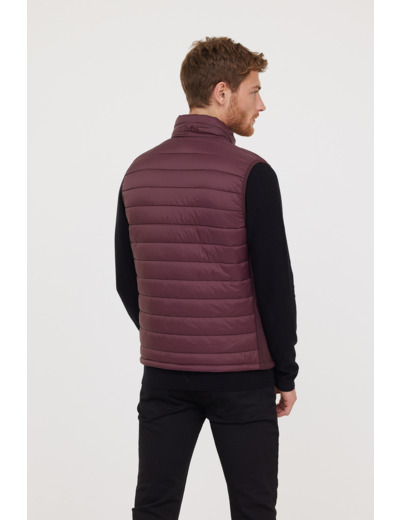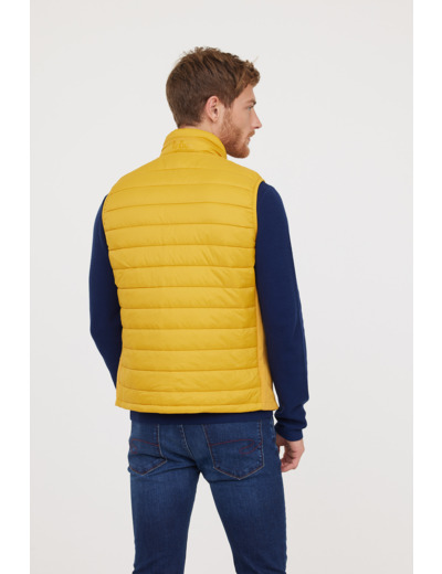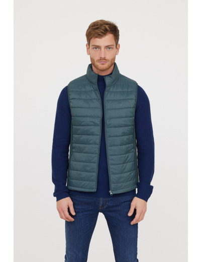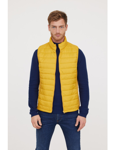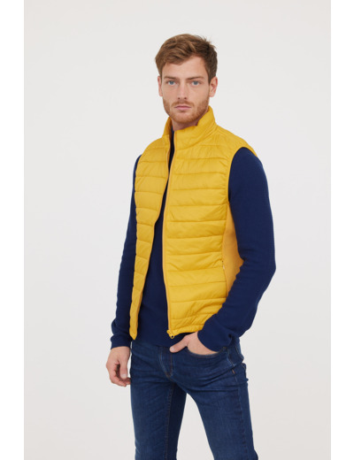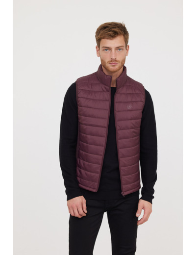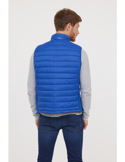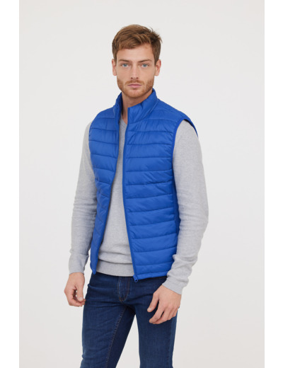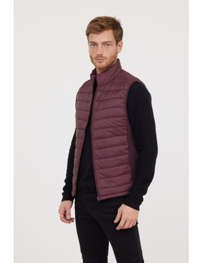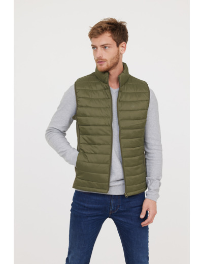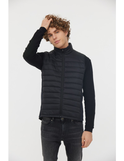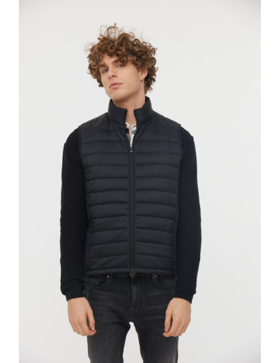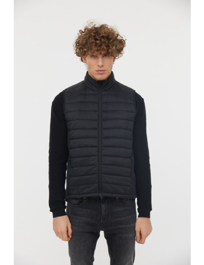 Doudoune Légère Basique Sans Manches En Nylon, Print Poitrine, Bandes Élastiques Côtés