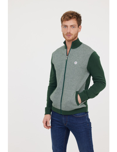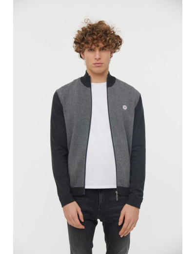 Gilet Zippé Maille Piquée Et Badge Poitrine