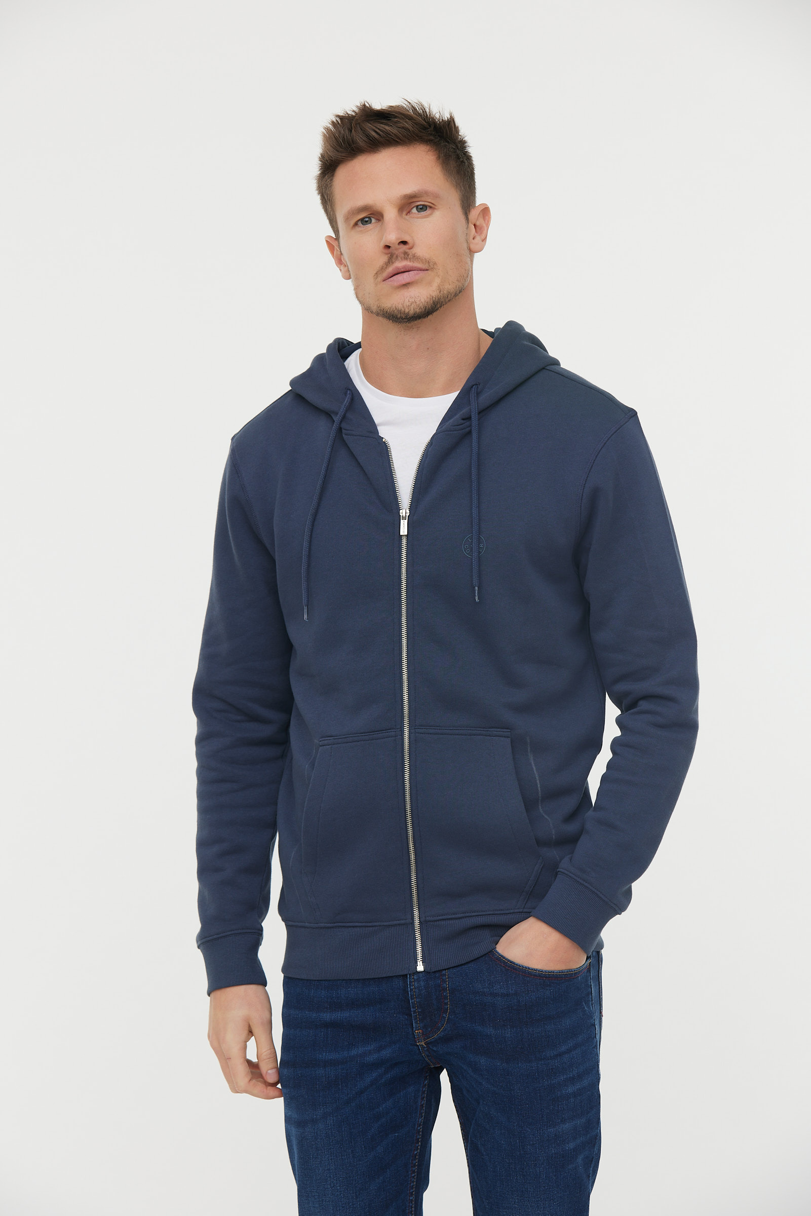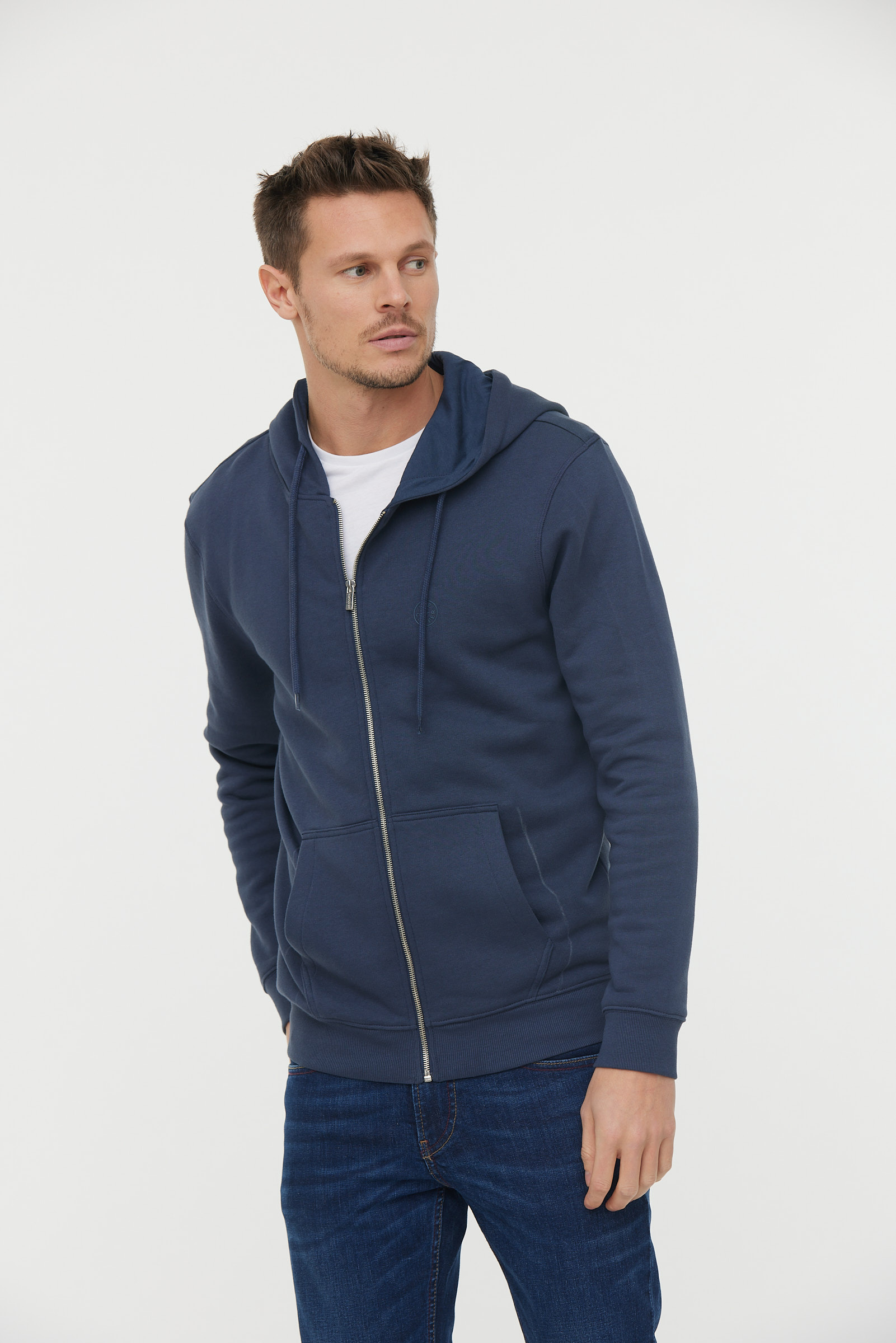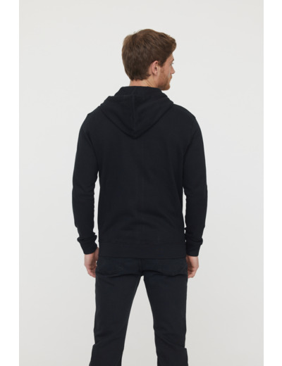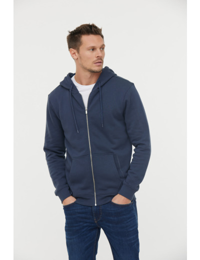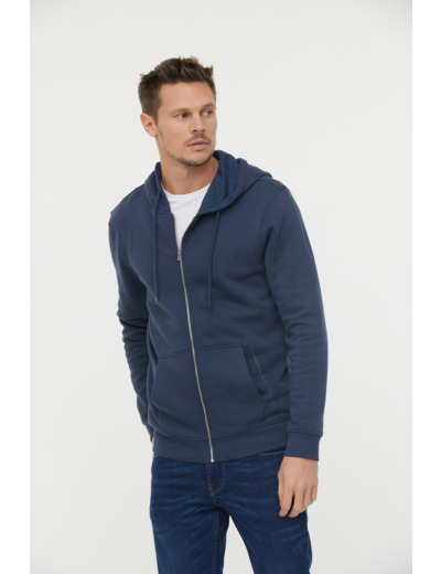 Hoodie Zippé Basique En Coton Bio Gratté Et Print Poitrine