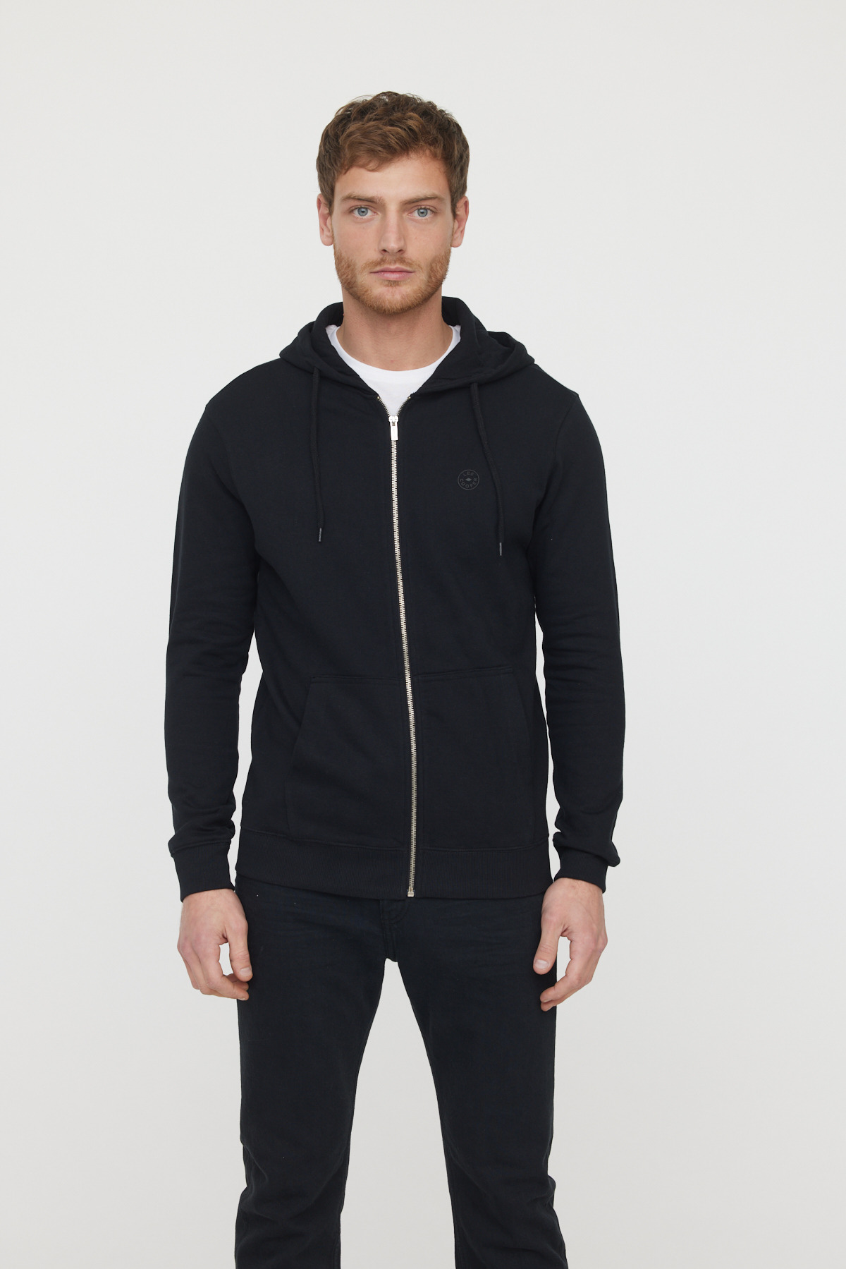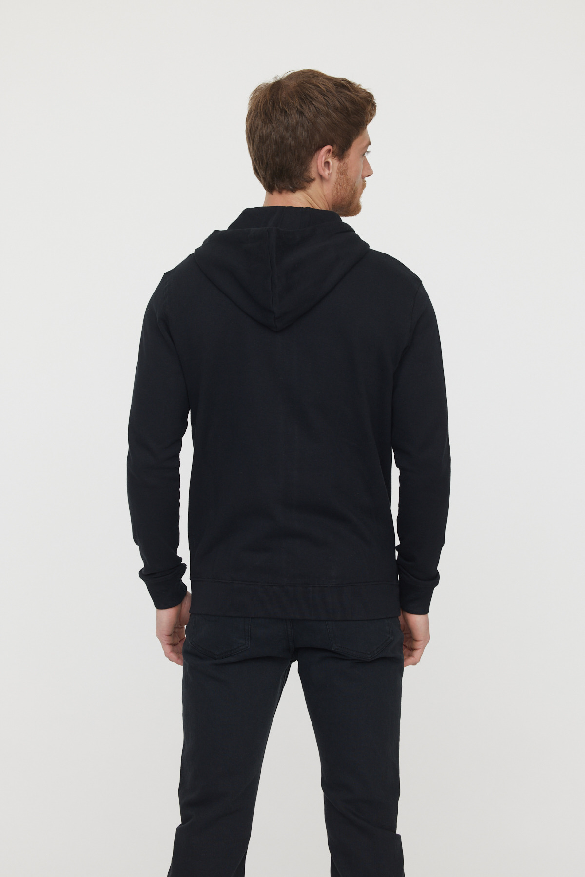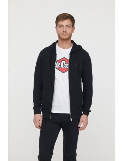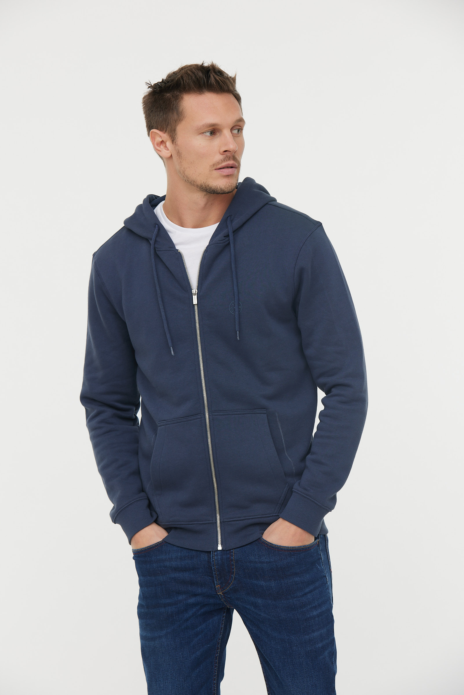 Hoodie Zippé Basique En Coton Bio Gratté Et Print Poitrine