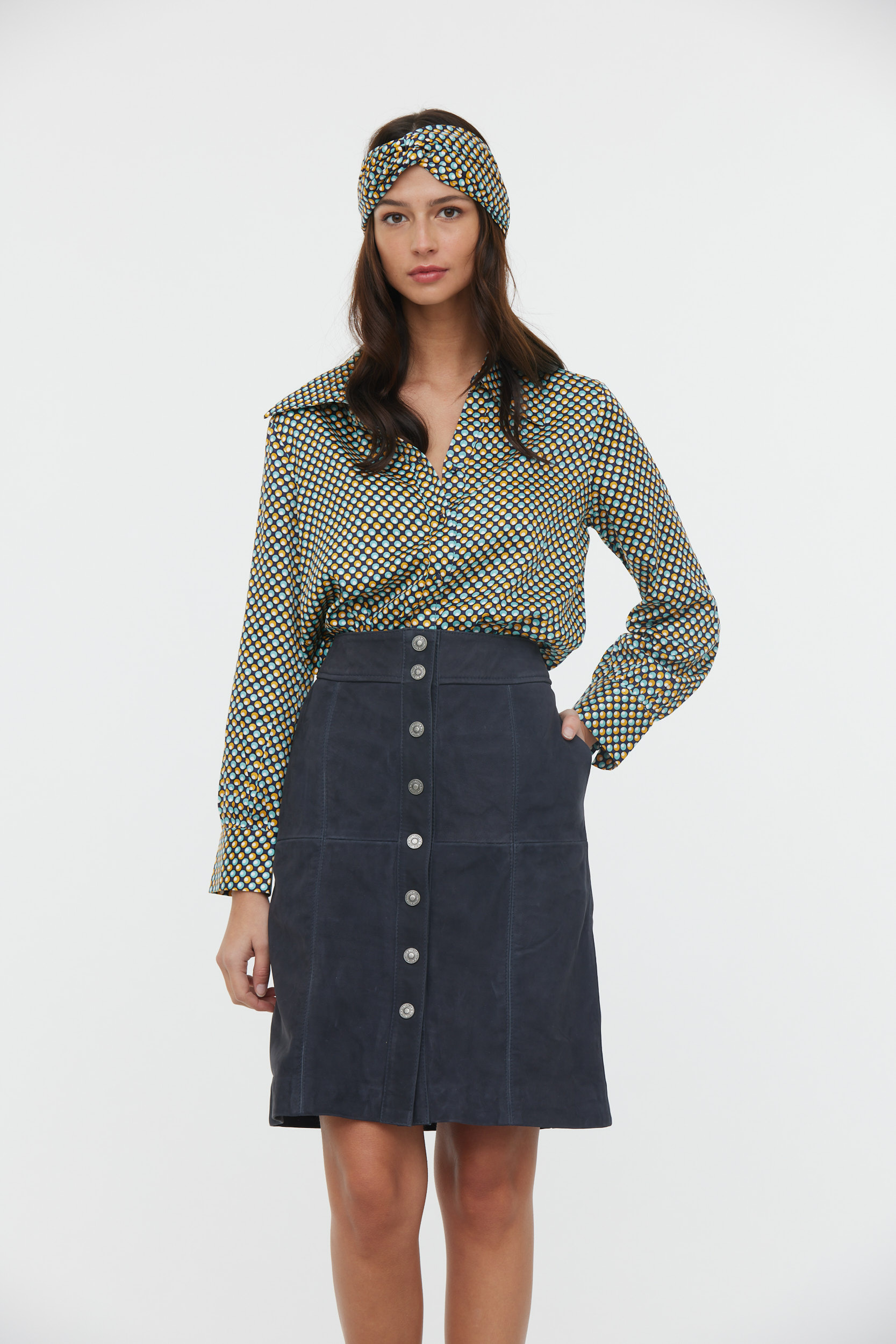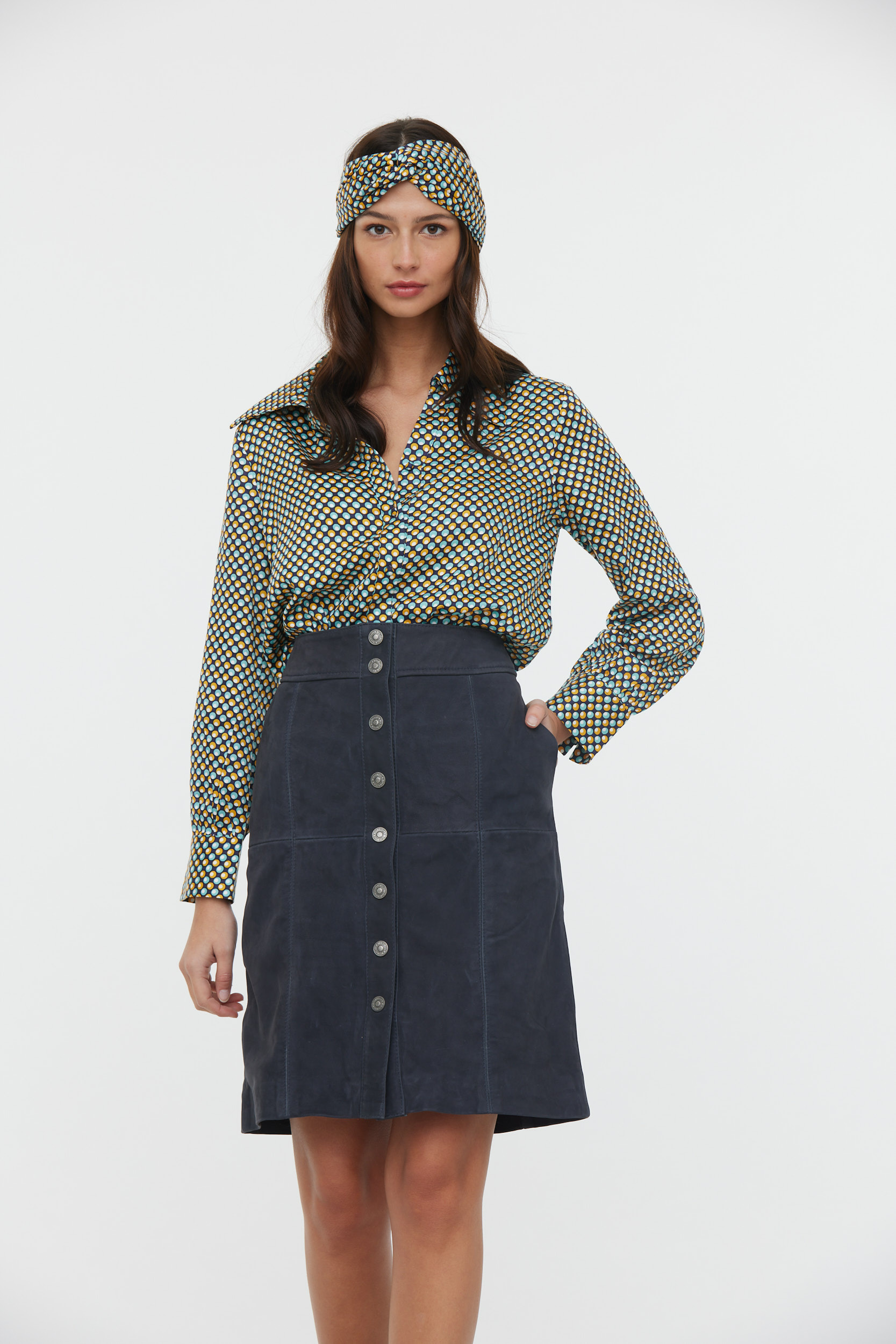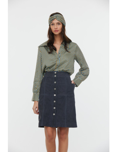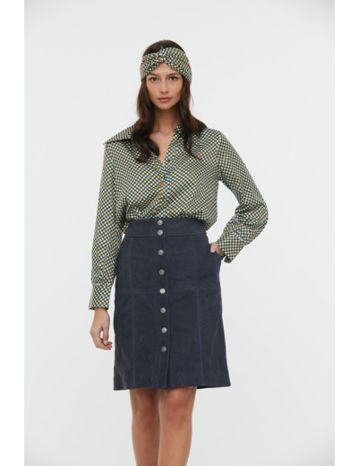 Jupe Boutonnée Devant En Nubuck De Vache Avec Jeu De Découpes