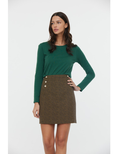 Jupe Courte Boutons Devant Tissu Tissé Jacquard