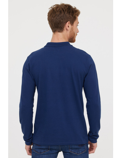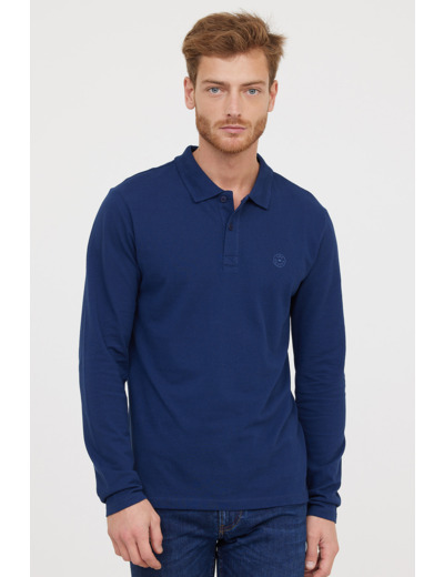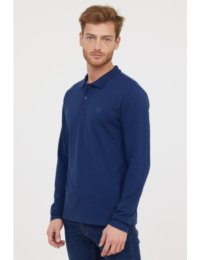 Polo Basique Manches Longues En Coton Piqué Bio, Détail Col Et Print Poitrine
