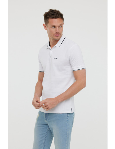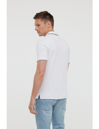 Polo En Maille Nid D’abeille, Manches Courtes, Avec Détails Contrastés En Bas De Manches, Col Et Broderie Poitrine