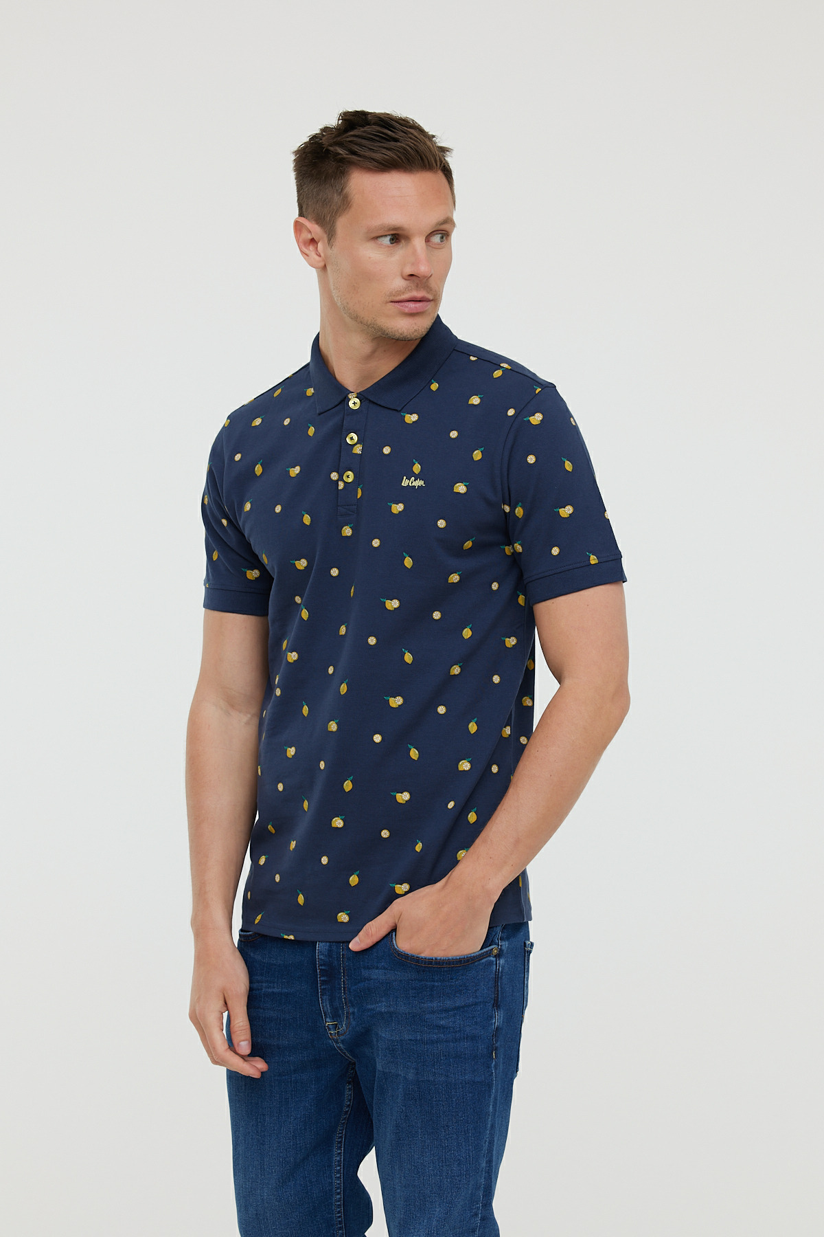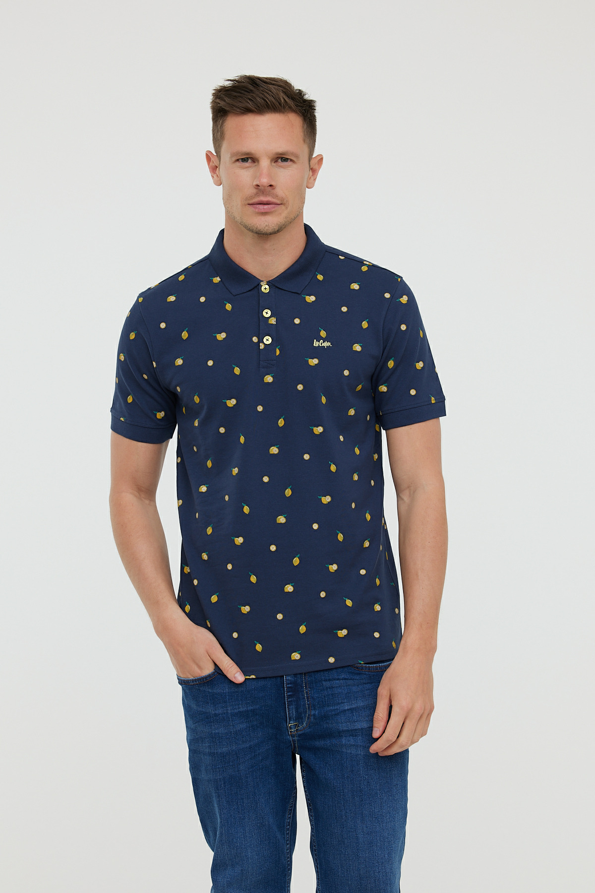 Polo En Piqué De Coton, Manches Courtes, Avec Allover « Citrons » Et Broderie Lee Cooper Poitrine