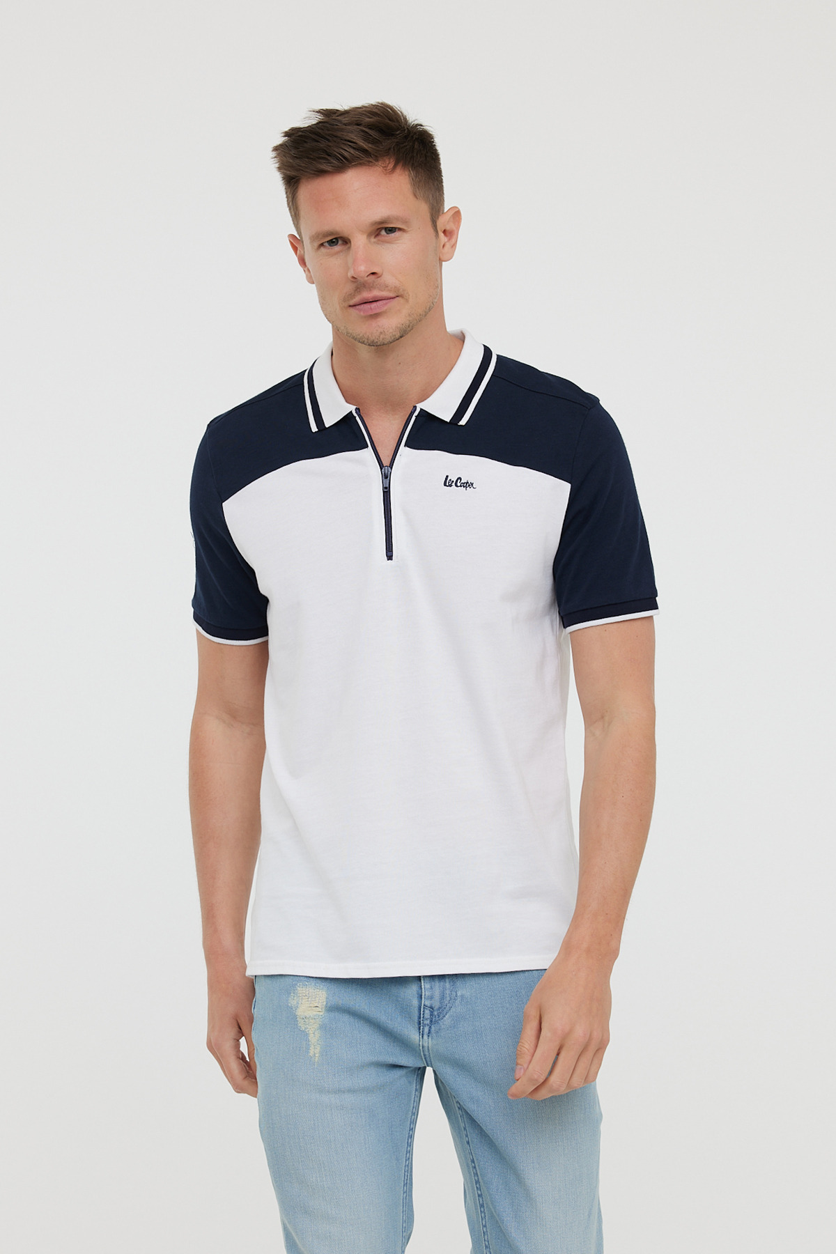 Polo Manches Courtes Zippé Avec Jeu De Découpes Et Broderie Poitrine