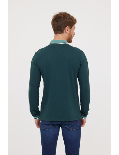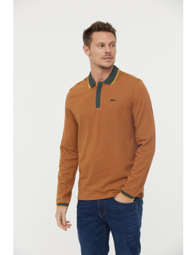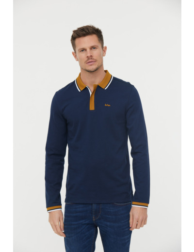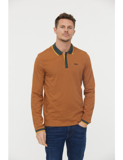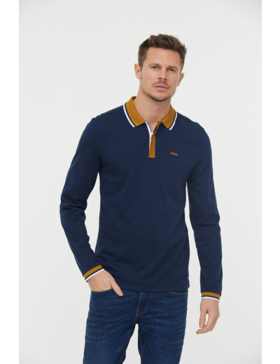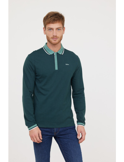 Polo Manches Longues Détails Col Et Poignet Zip Et Broderie Poitrine Contrastée