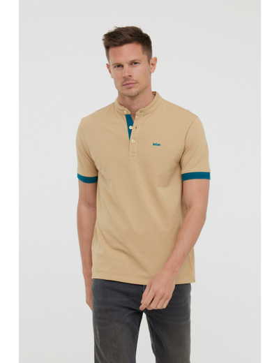 Polo Piqué, Col Mao, Manches Courtes Avec Détails Contrastés, Broderie Lee Cooper Poitrine