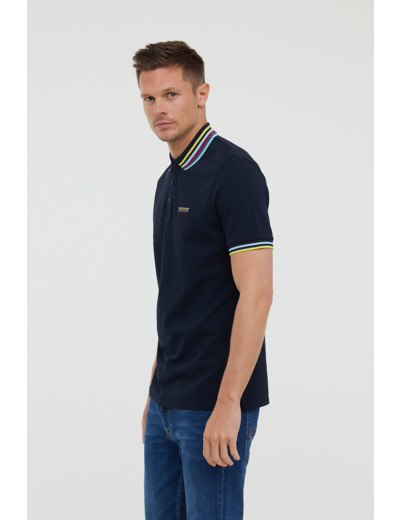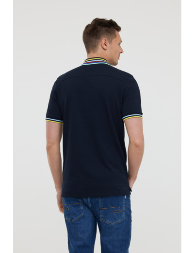 Polo Piqué Manches Courtes Avec Découpes Épaules, Détails Contrastés Au Col Et Bas De Manches, Broderie Poitrine