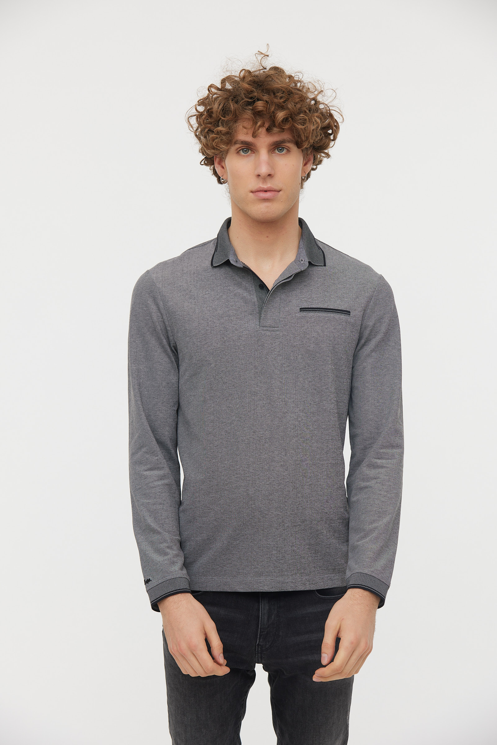 Polo Piqué Manches Longues Avec Poche Poitrine