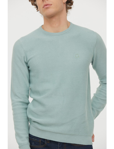 Pull Basique Col Rond Maille Fantaisie En Coton Bio Avec Print Poitrine