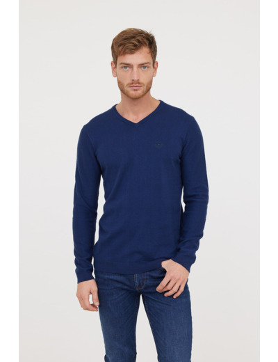 Pull Basique Col V Avec Laine Recyclée Et Print Poitrine