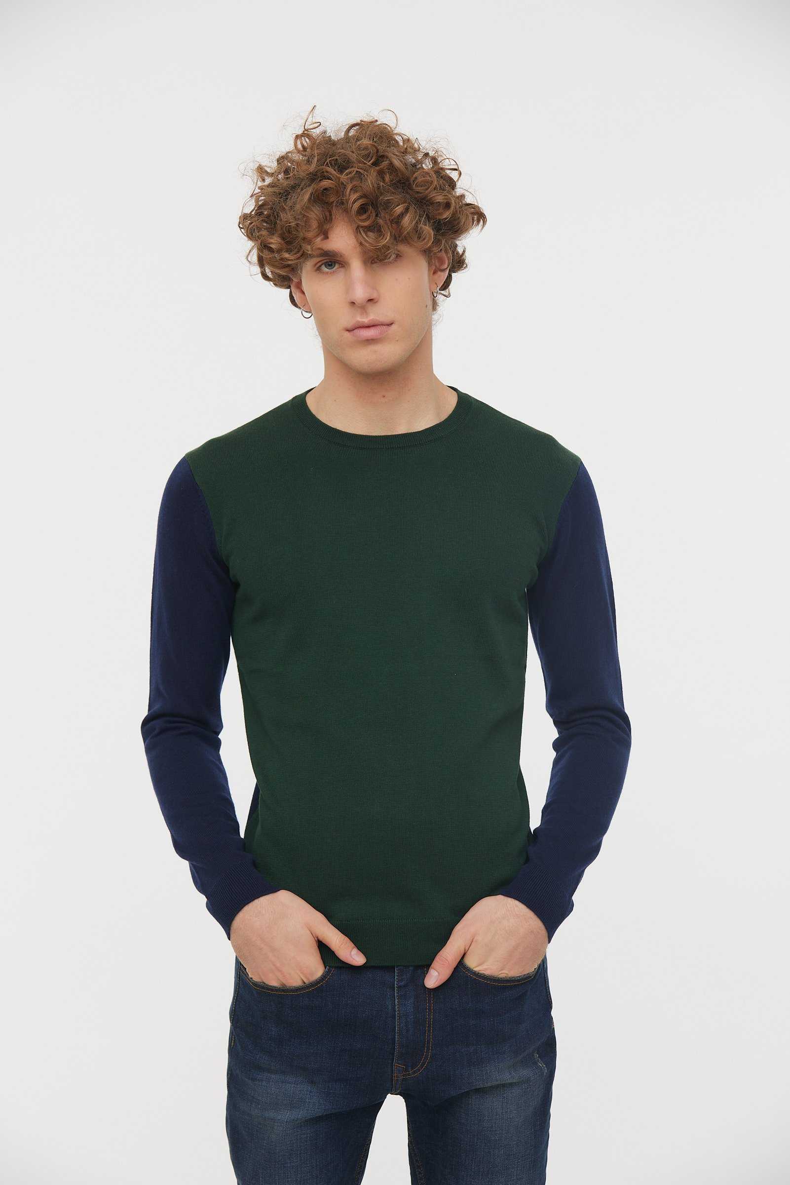 Pull Col Rond Léger Bicouleur
