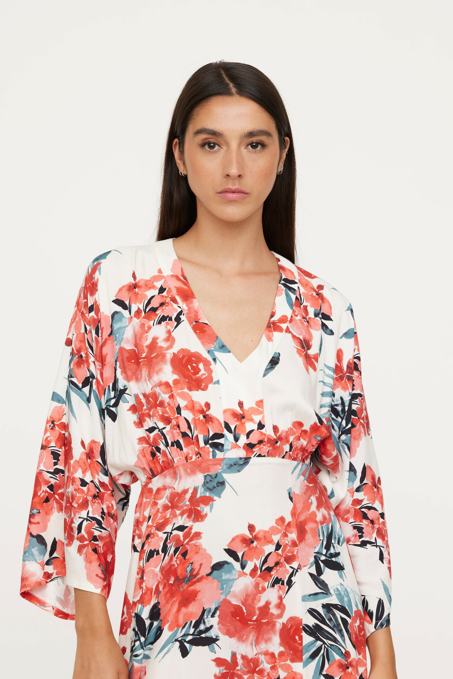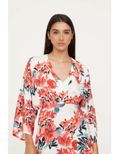 Réponse. Sa coupe fluide et son imprimé délicat s’adaptent à la plupart des silhouettes, offrant une allure féminine et confortable.