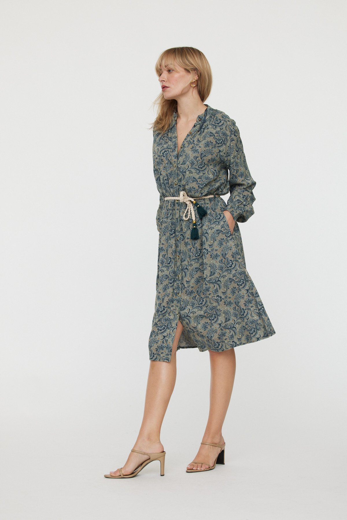 Fabriquée en tissu de qualité, la Robe Layla Kaki Olive est conçue pour durer. Elle présente une coupe droite avec manches courtes, fermeture discrète et longueur midi, adaptée à toutes les morphologies.