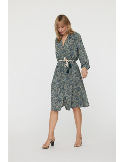 Réponse. La robe est réalisée en coton mélangé pour un confort optimal et une bonne tenue.