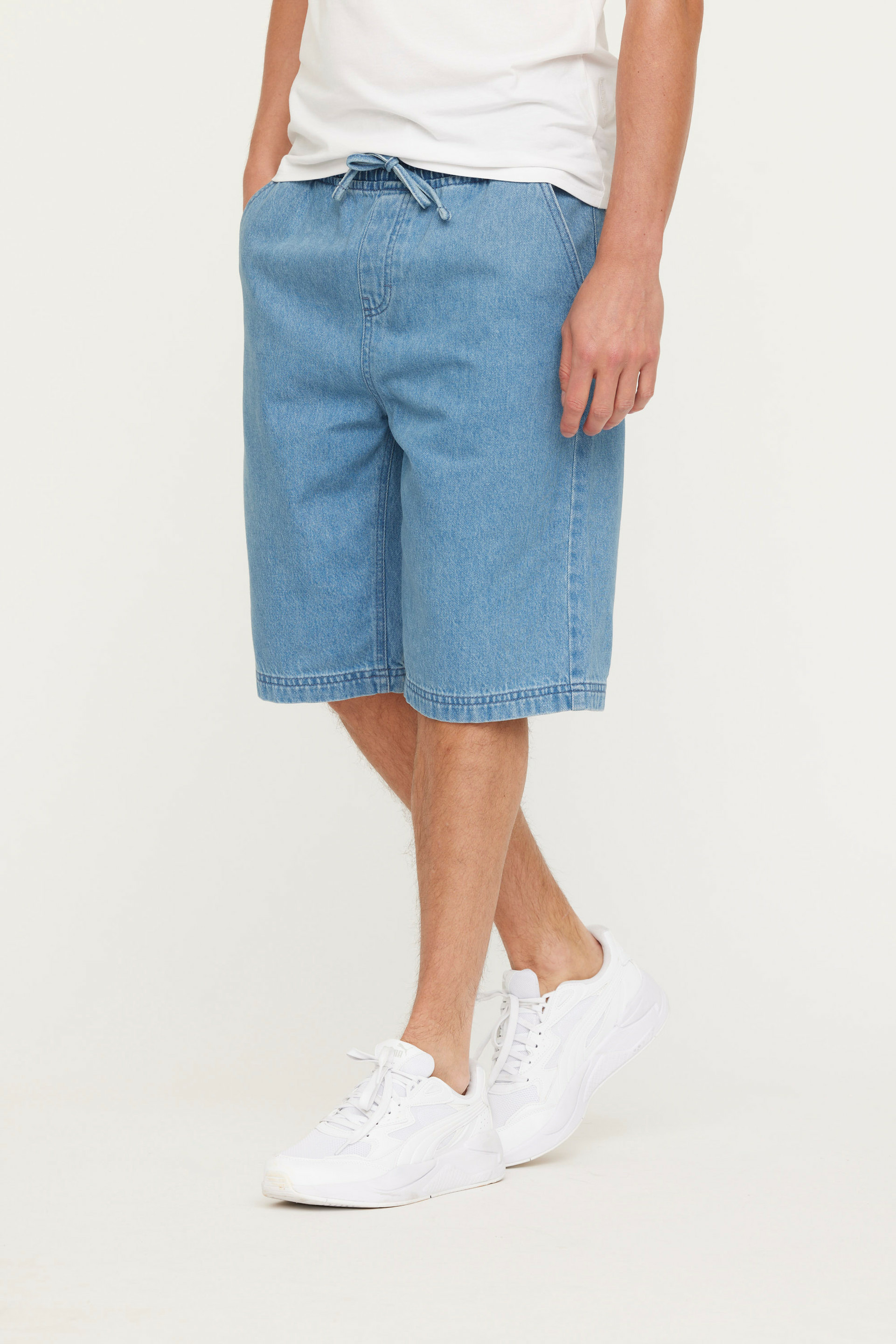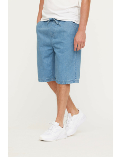 Réponse. Le short est proposé en bleu clair, idéal pour un look estival.