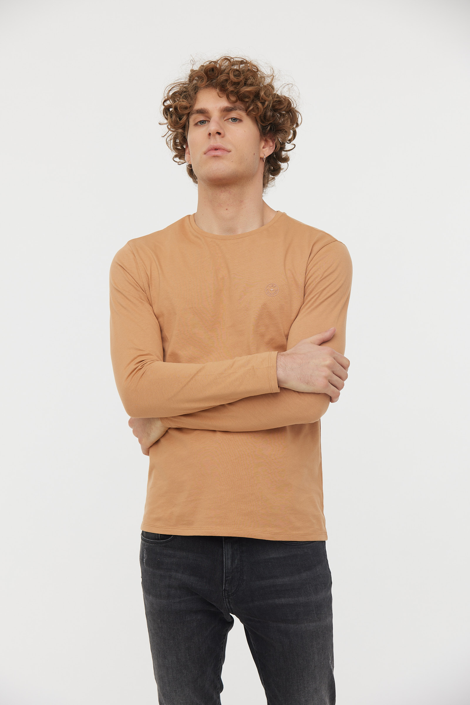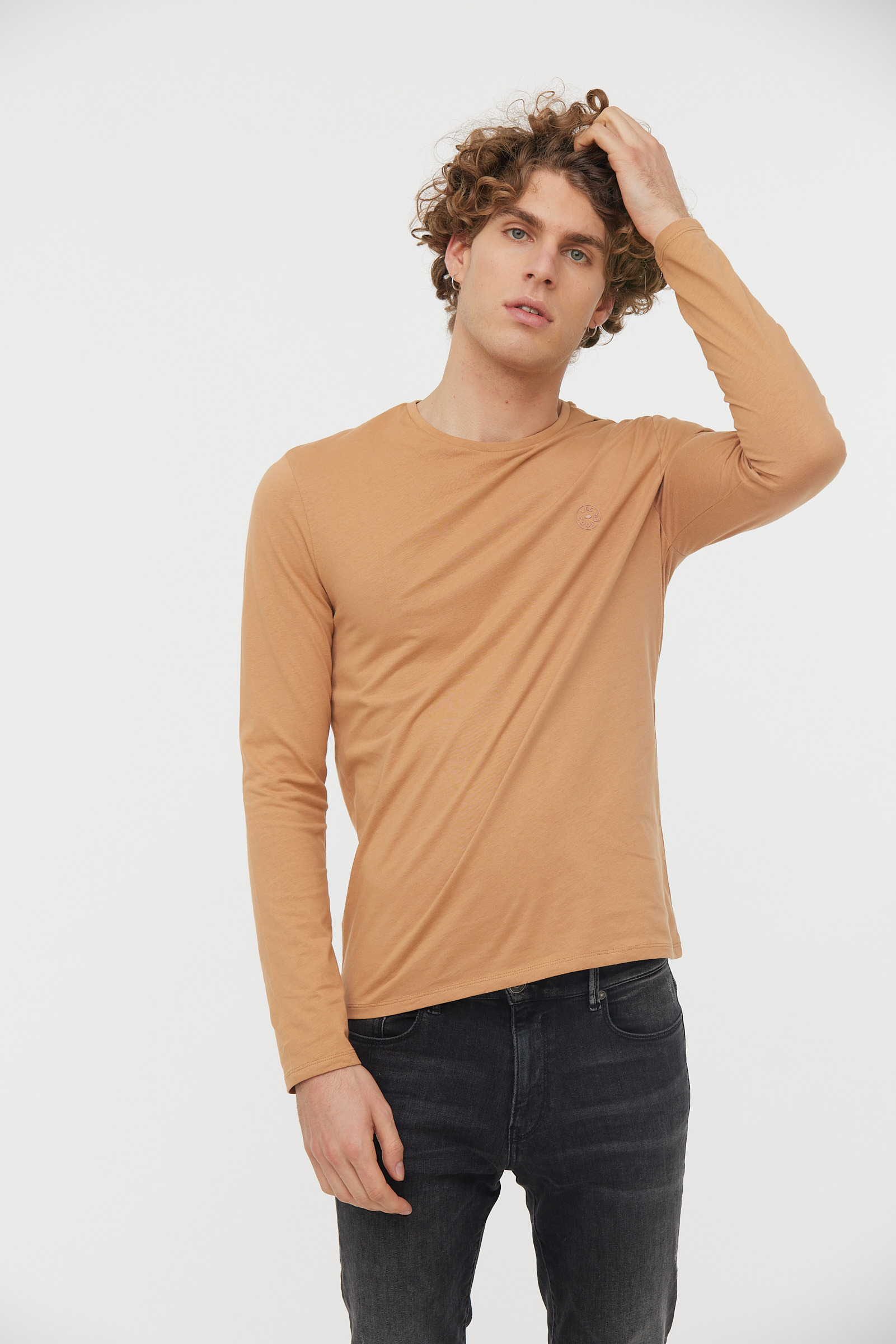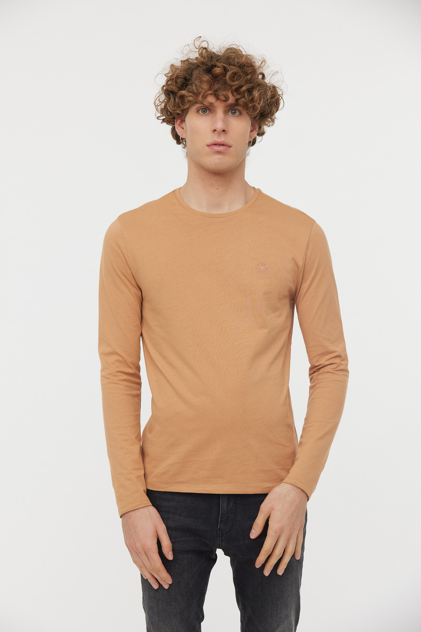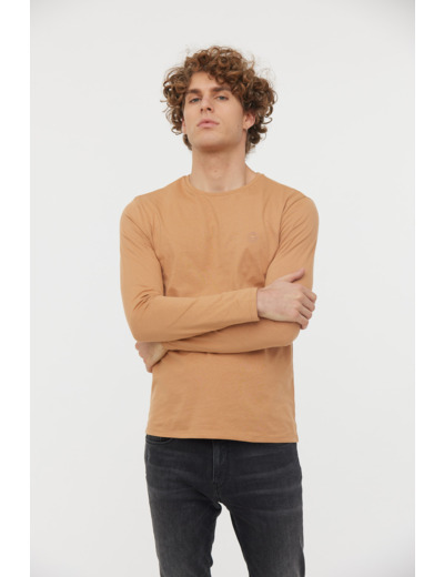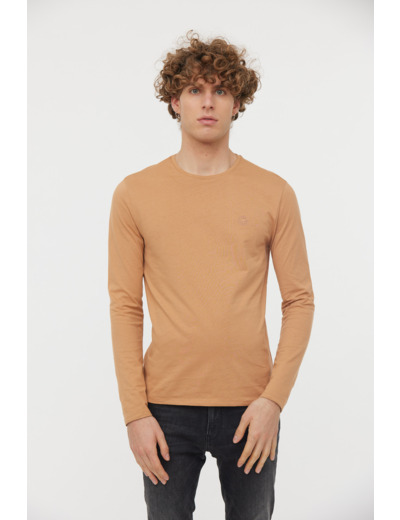T-Shirt Basique Col Rond Manches Longues En Coton Bio Avec Print Poirtine