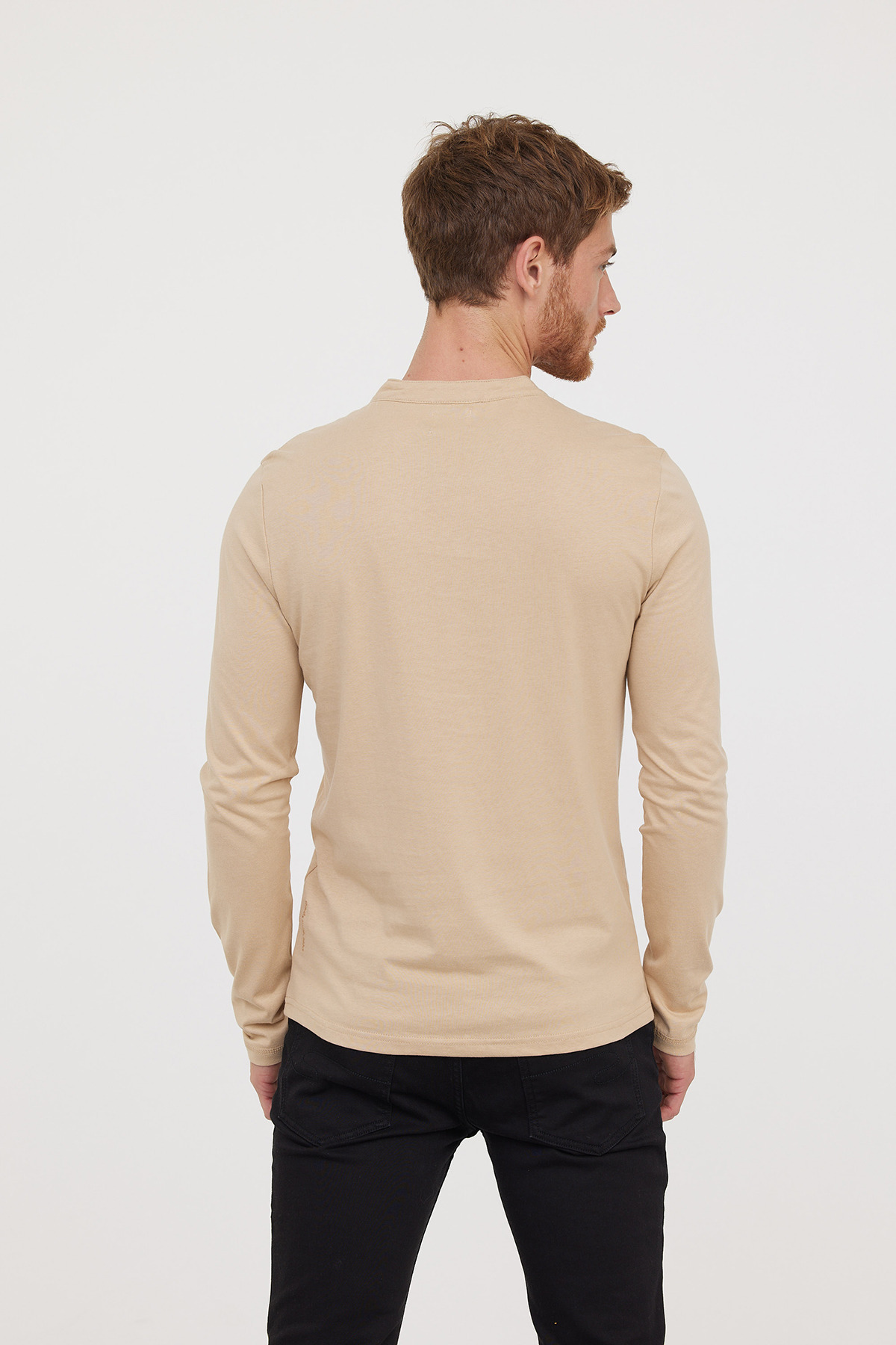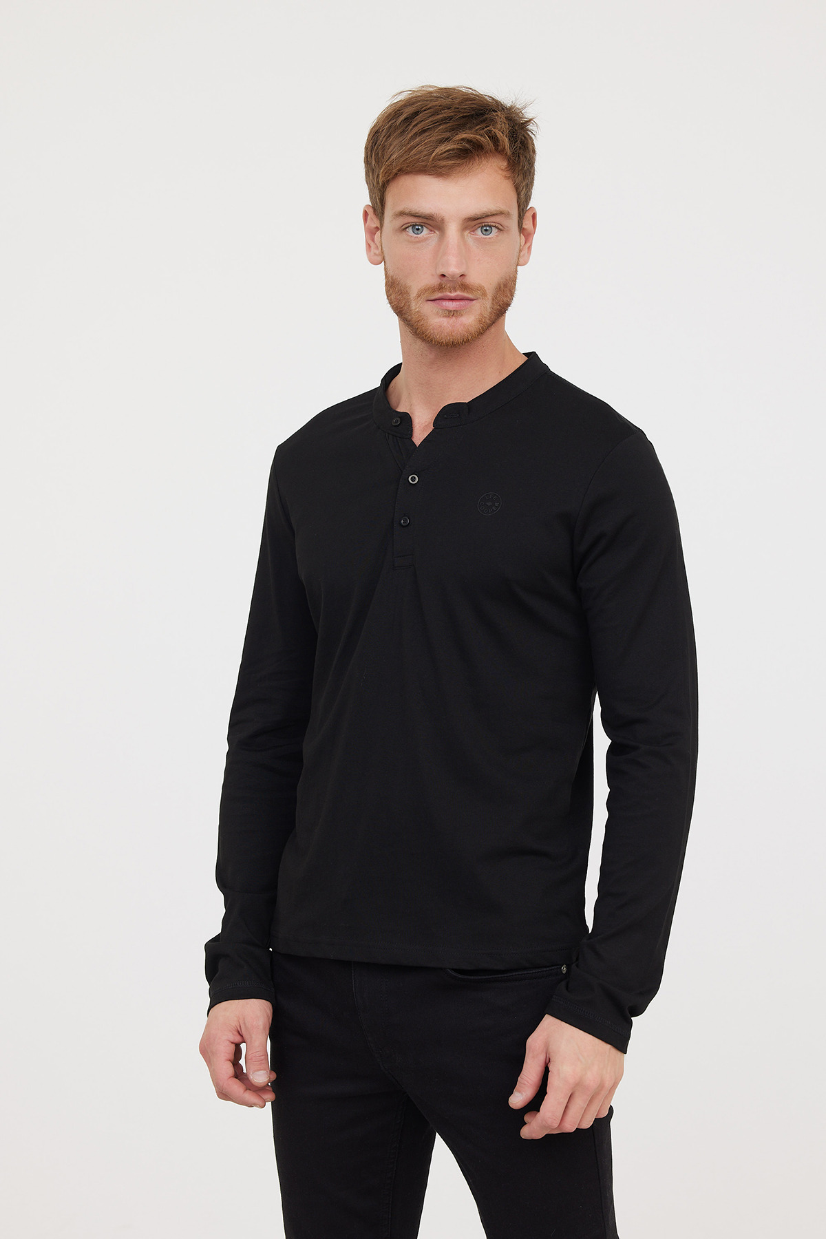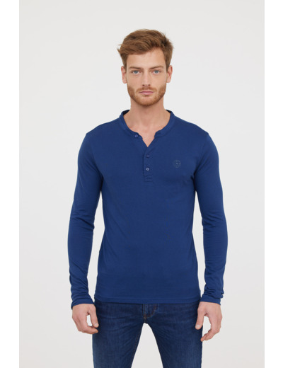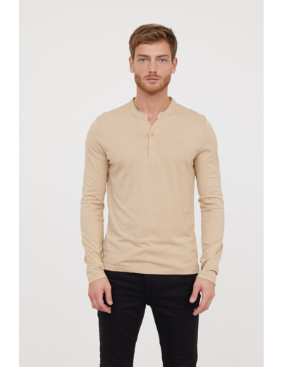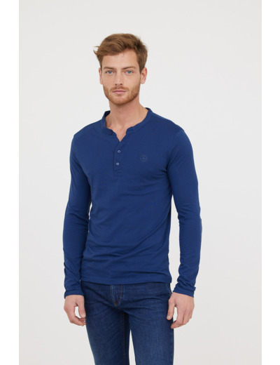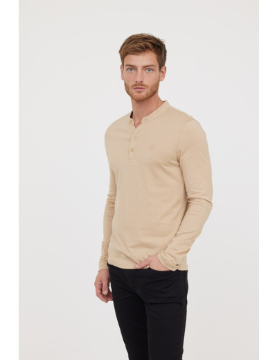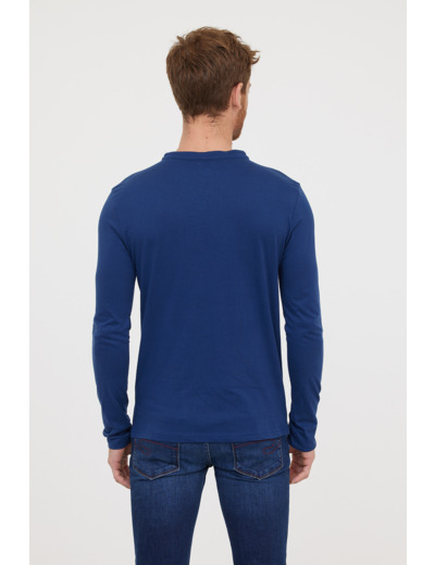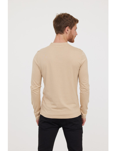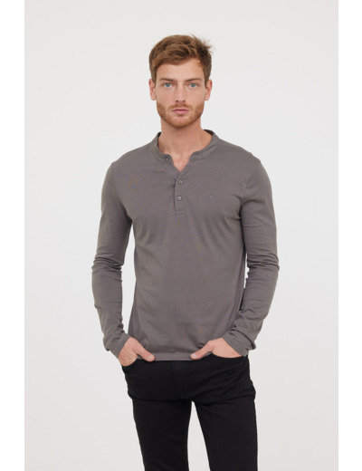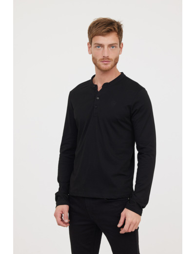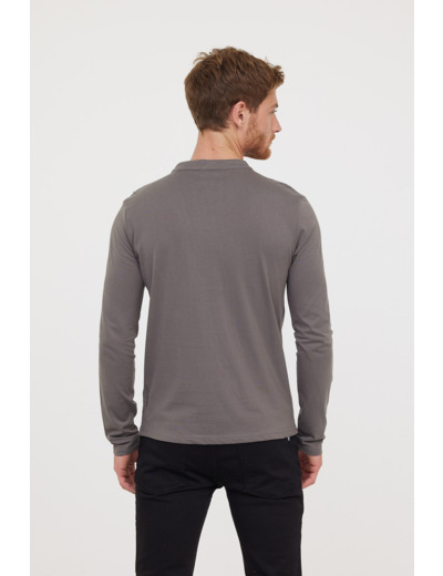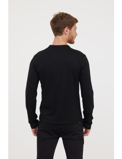 T-Shirt Basique Col Tunisien Fantaisie Manches Longues En Coton Bio Et Print Poitrine