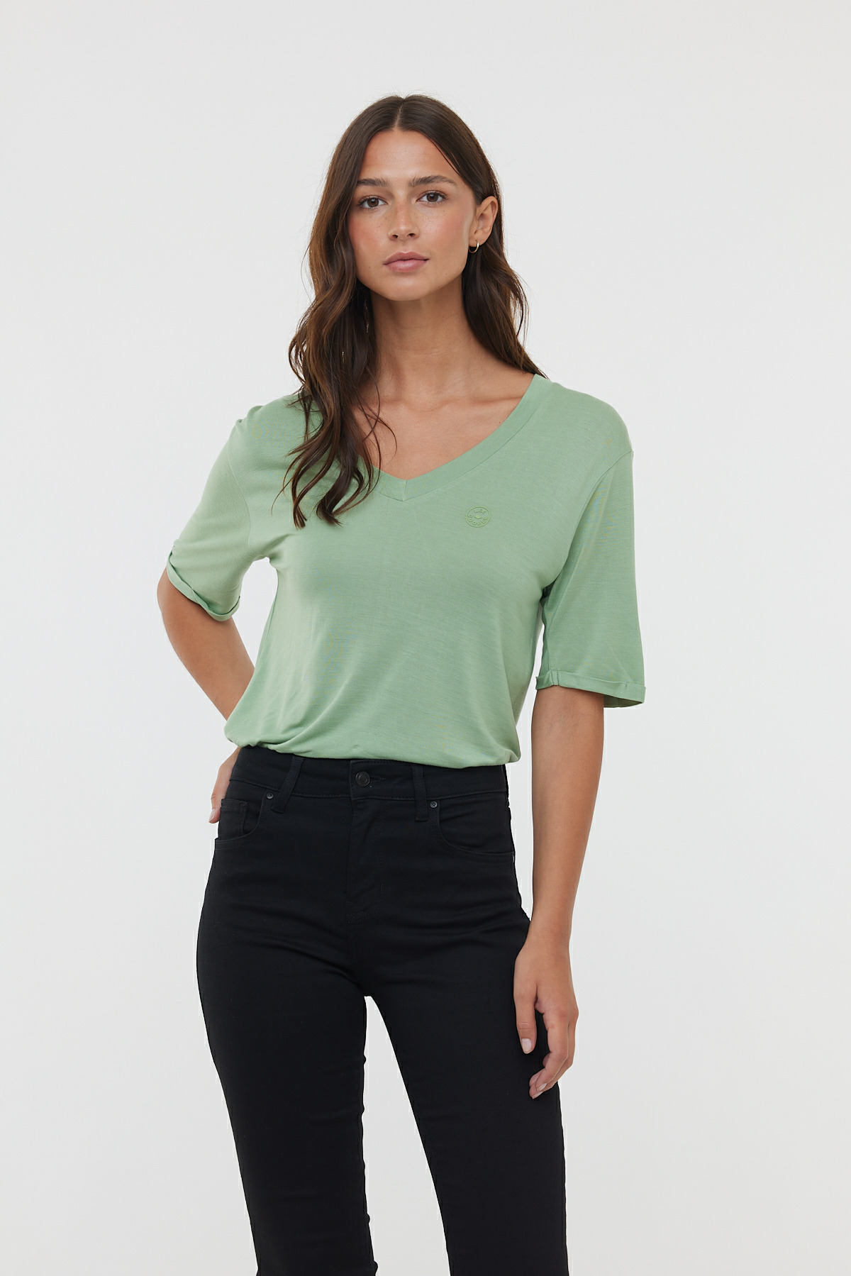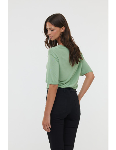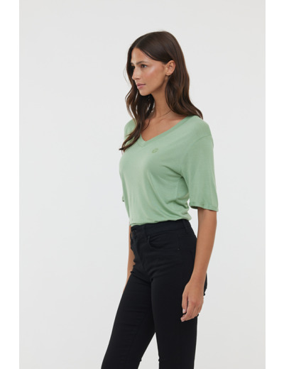 T-Shirt Basique Manches Courtes Col V En Viscose Recyclée