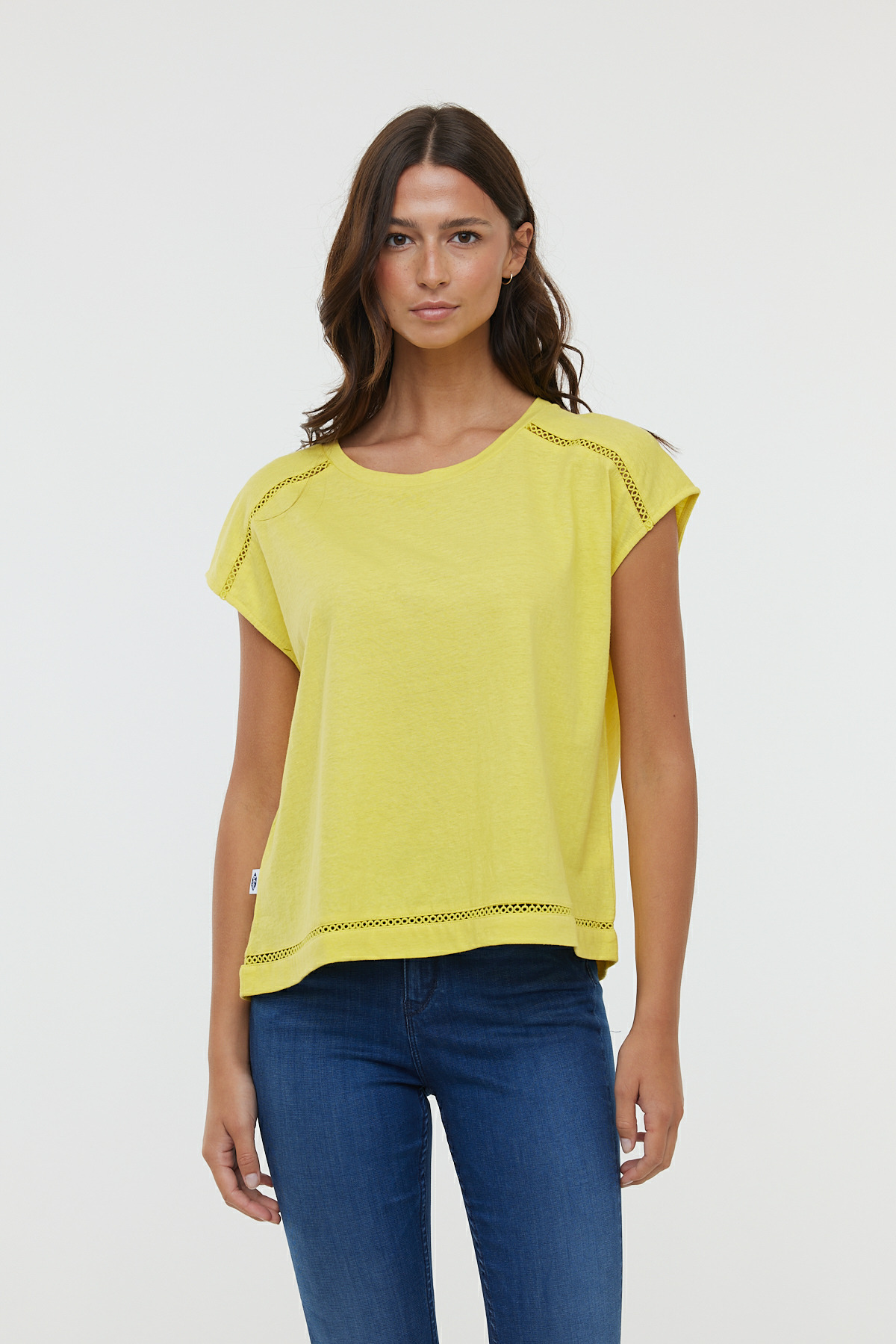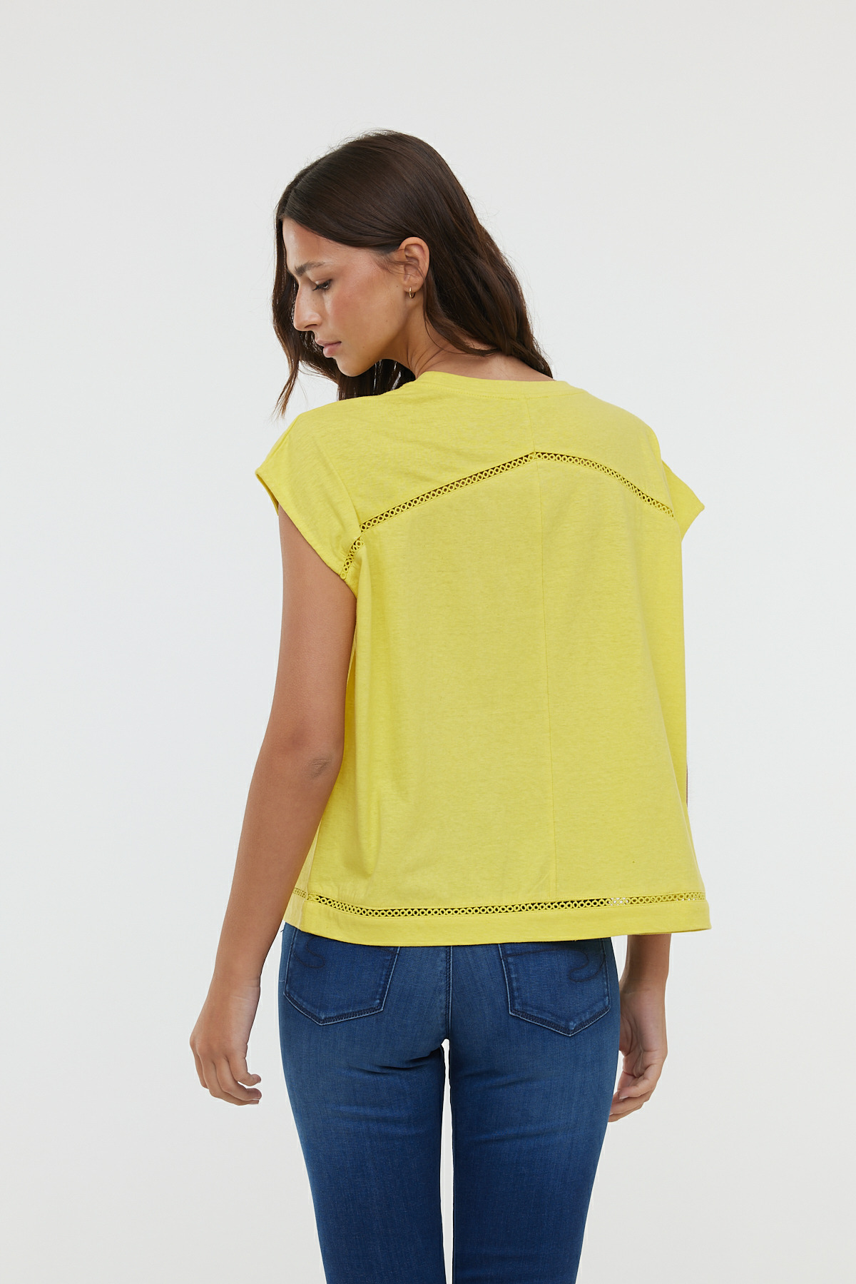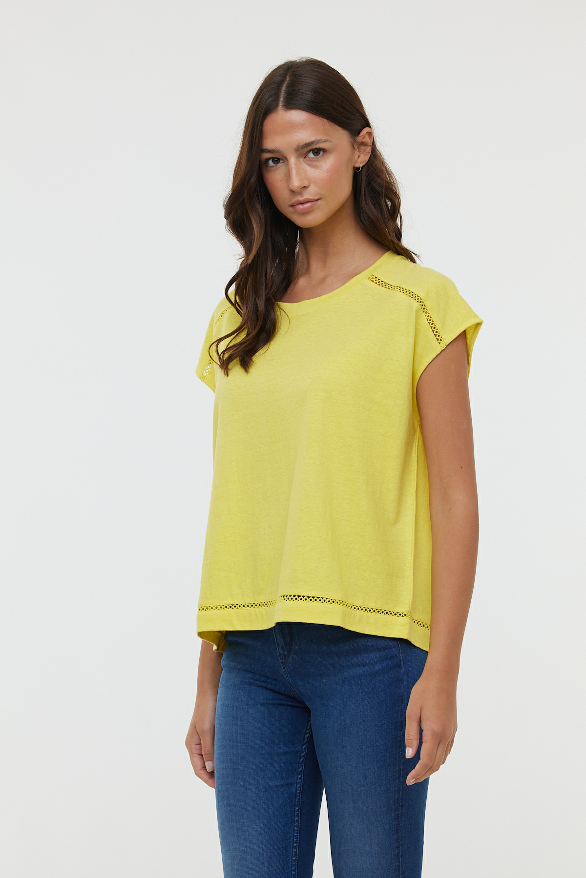 T-Shirt Manches Courtes En Coton Lin Avec Détails Ajouré