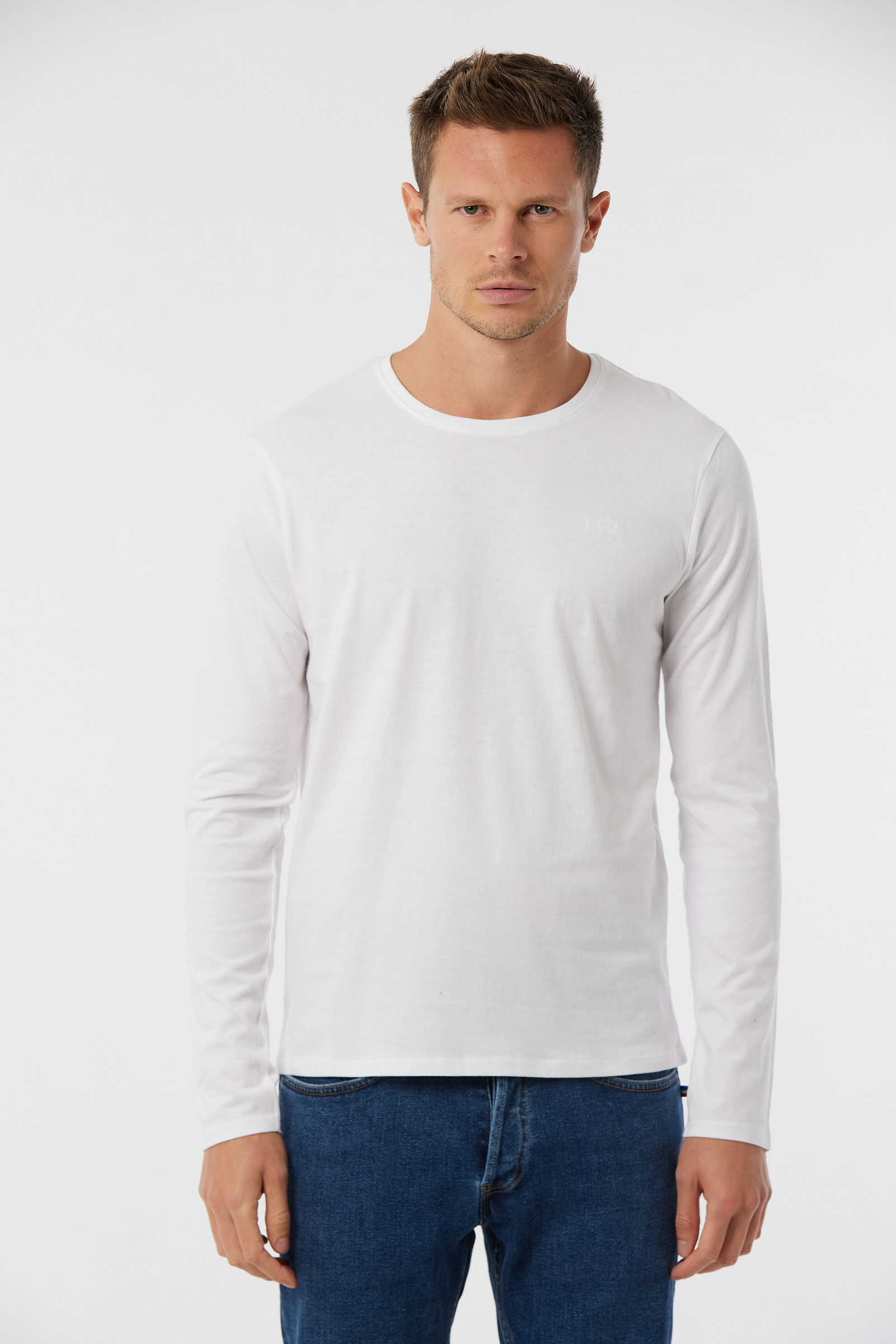 T-Shirt Manches Longues Col Rond Broderie Poitrine