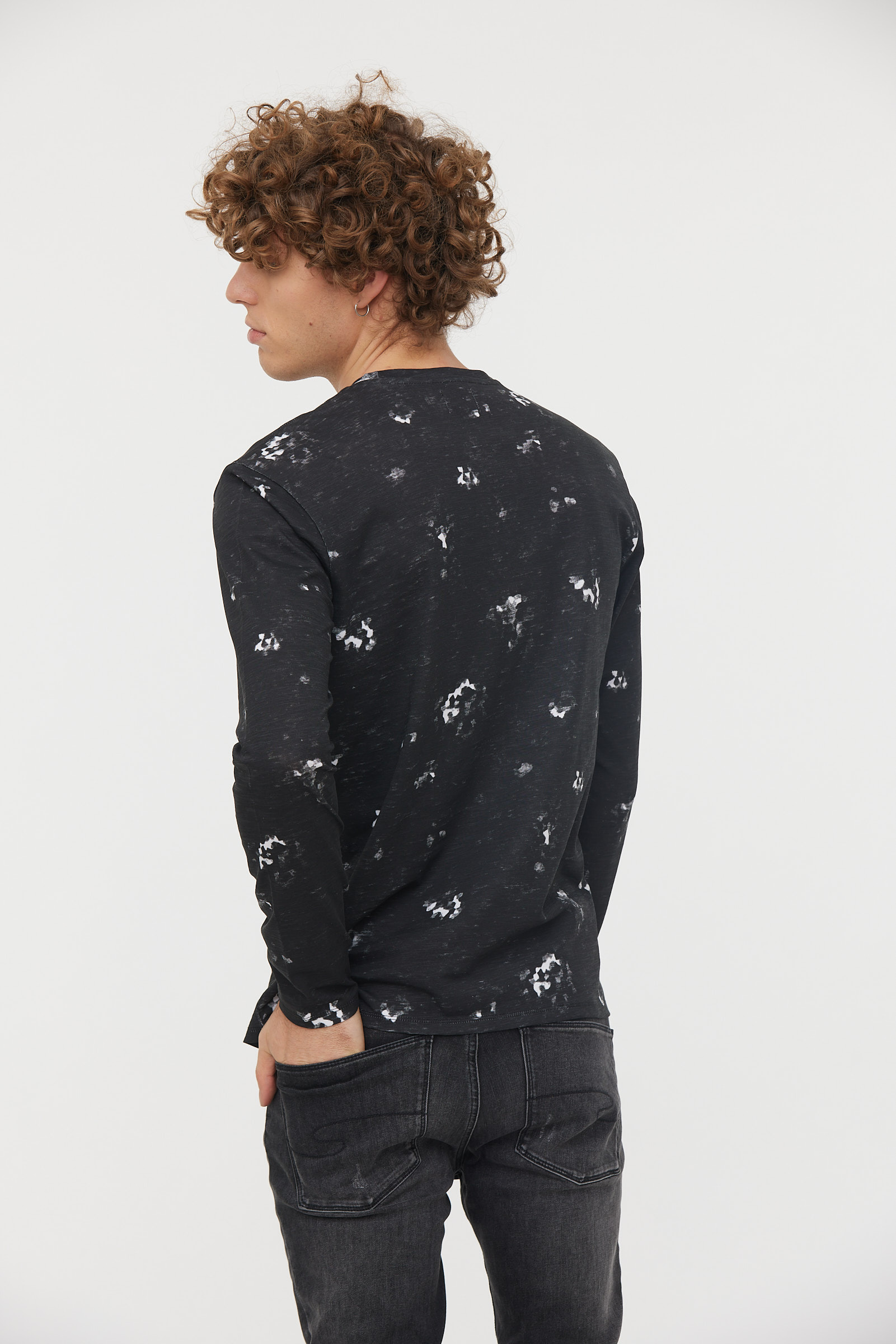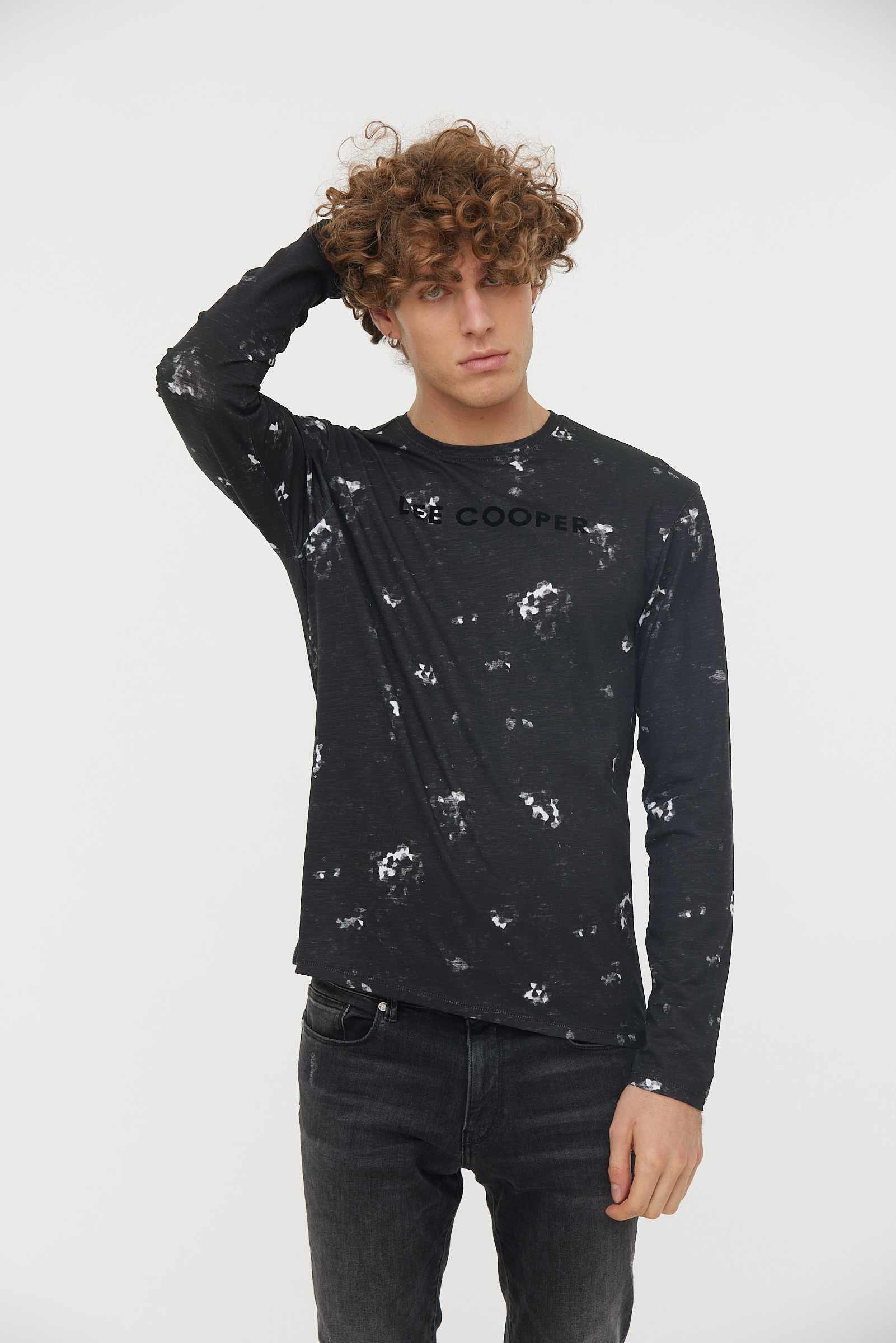 T-Shirt Manches Longues En Coton Slub Allover Et Flock Print "Lee Cooper"