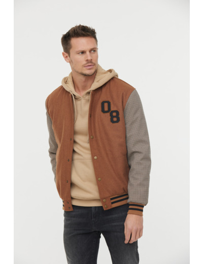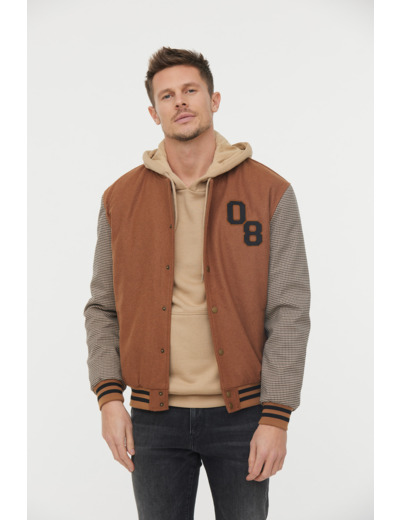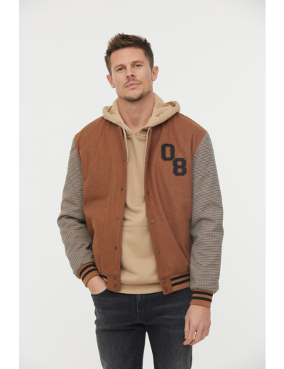 Teddy En Lainage Et Manches À Carreaux, Badge «08» Poitrine