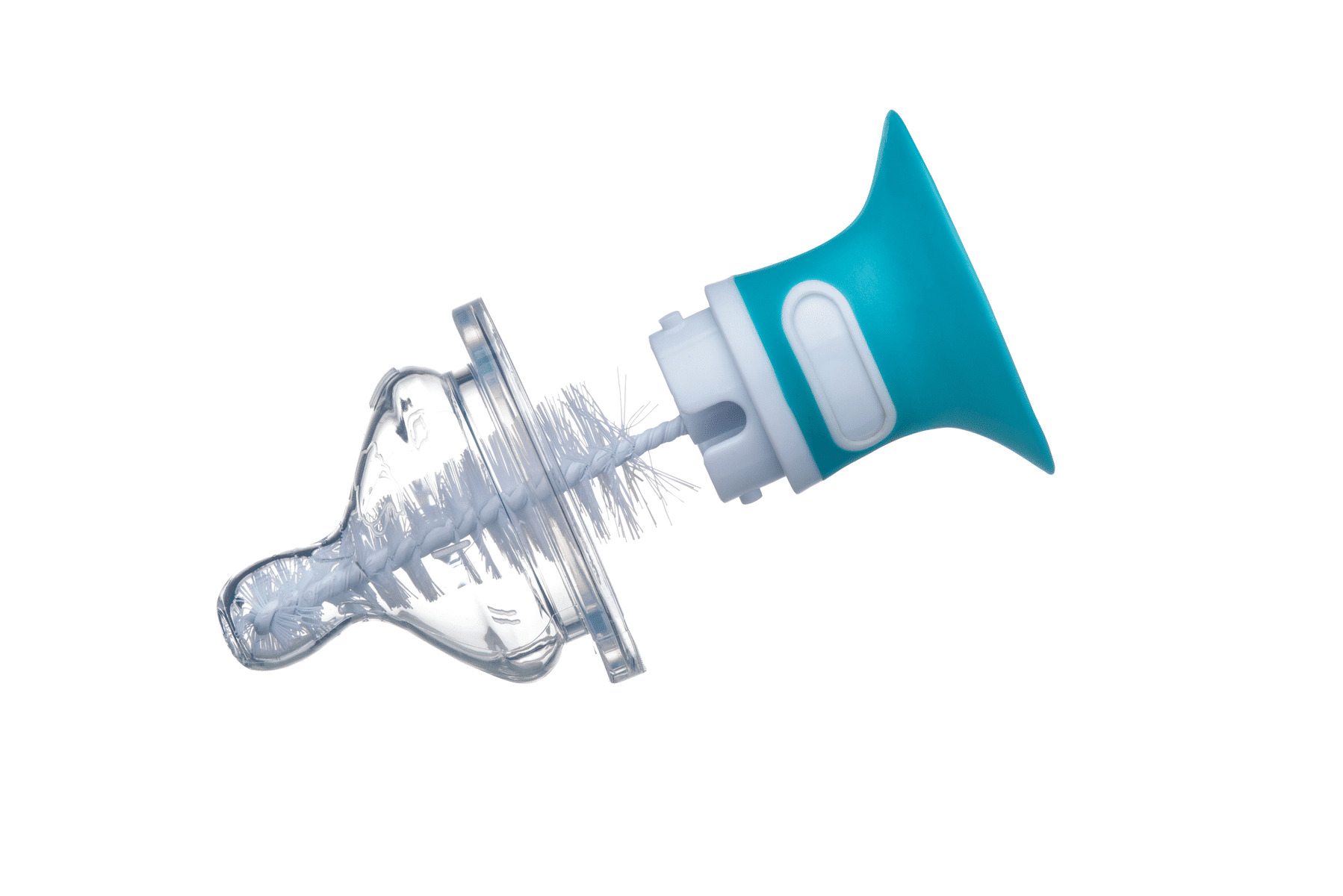 Il suffit de fixer la ventouse sur une surface lisse, puis d’utiliser la brosse pour nettoyer la tétine en profondeur, en rinçant à l’eau claire.