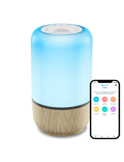 Plusieurs berceuses et sons apaisants sont proposés, ainsi que des lumières aux couleurs et intensités personnalisables.