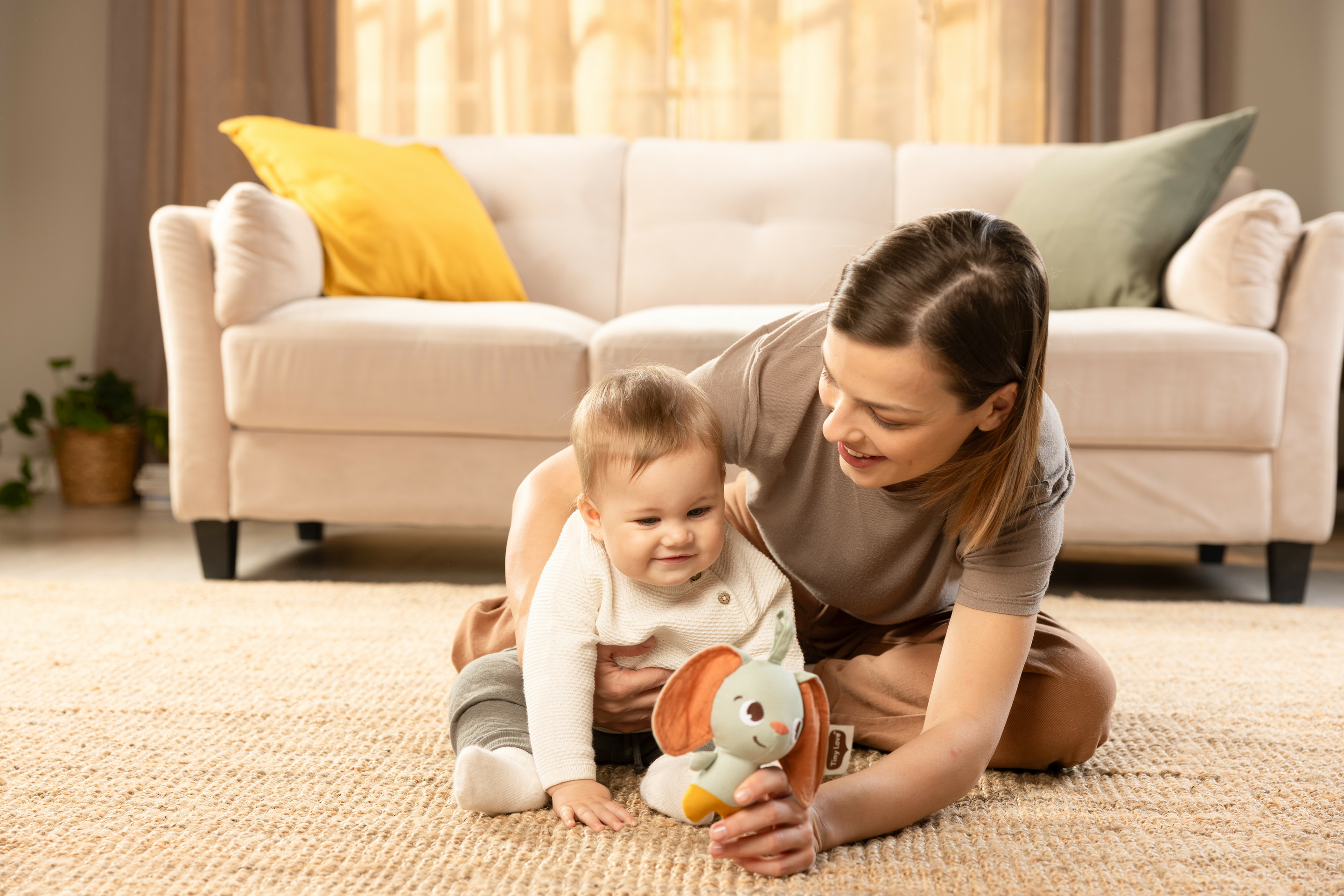 Fabriqué par Tiny Love, ce doudou hochet Bleu est équipé d’une boucle d’attache solide et d’un carillon doux, conçu pour durer et accompagner bébé partout.