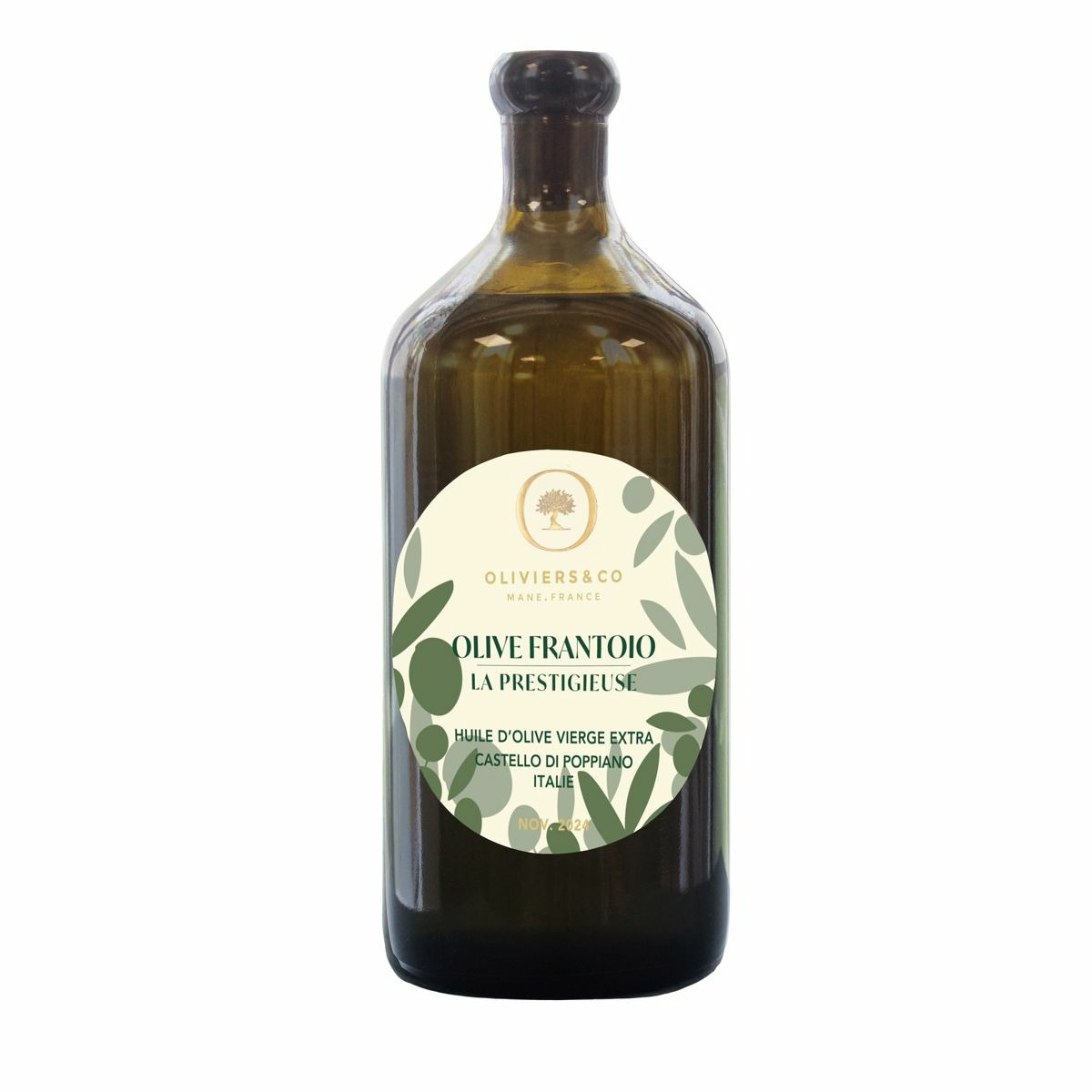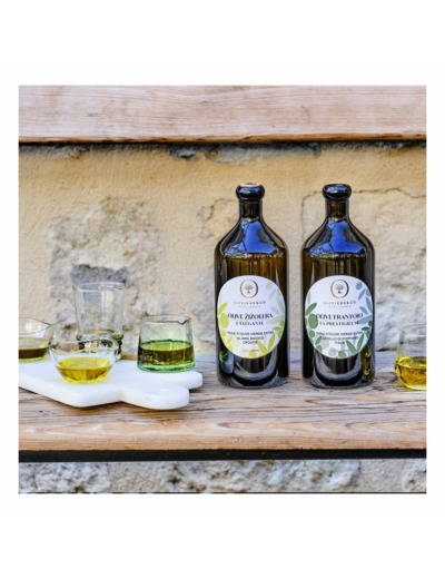 Réponse : L’huile est élaborée exclusivement à partir d’olives Frantoio, une variété emblématique de Toscane.
