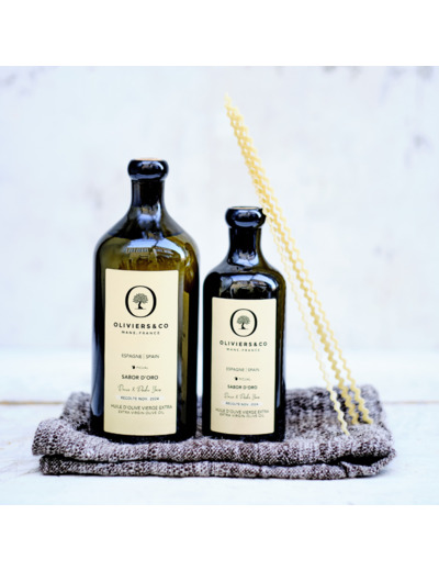Au-delà de son goût exceptionnel, SABOR D’ORO se distingue par un taux d’acidité ultra faible de 0,10 %, bien en dessous de la norme, et un taux élevé de polyphénols (440 mg/kg), gages de qualité, fraîcheur et bienfaits nutritionnels. Cette huile extra-fraîche est le fruit d’une récolte précoce et d’un savoir-faire rigoureux, pour une expérience gustative intense et saine.