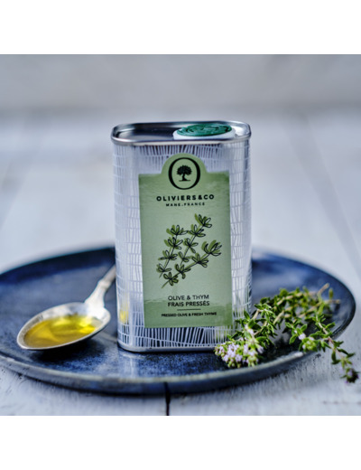 Réponse : Elle est obtenue par un pressage simultané des olives et du thym frais, ce qui préserve toute la saveur et l’arôme des deux ingrédients.