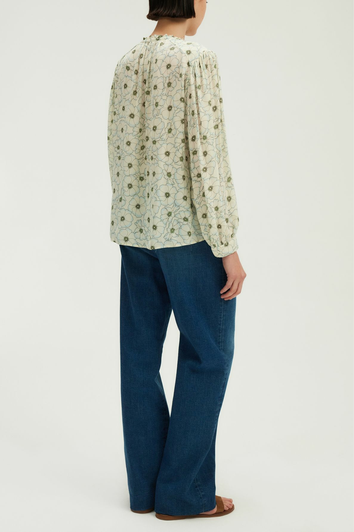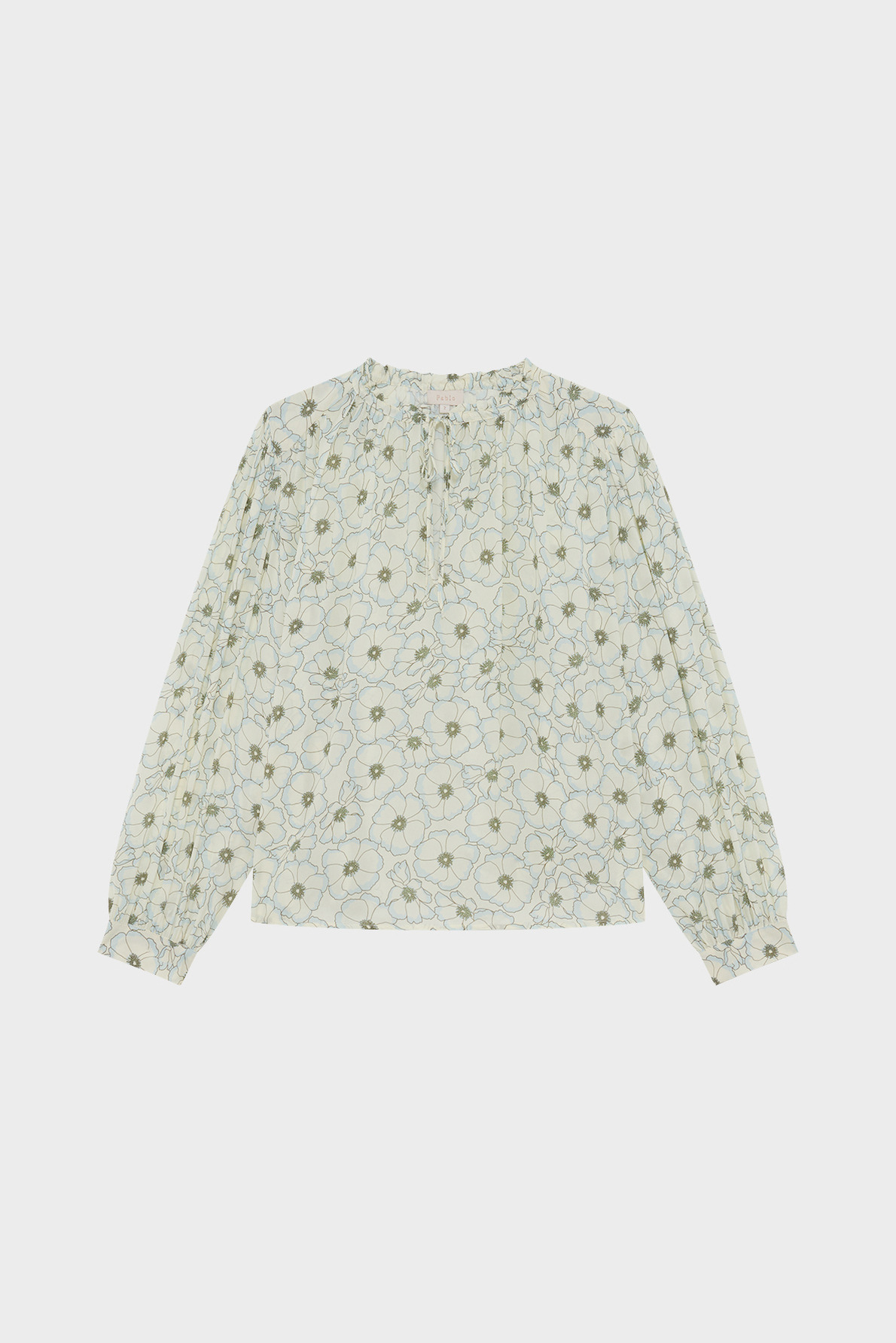Question ? Peut-on porter cette blouse en toute saison ? Réponse. Sa matière légère et ses manches longues la rendent adaptée aux saisons intermédiaires et aux soirées plus fraîches.