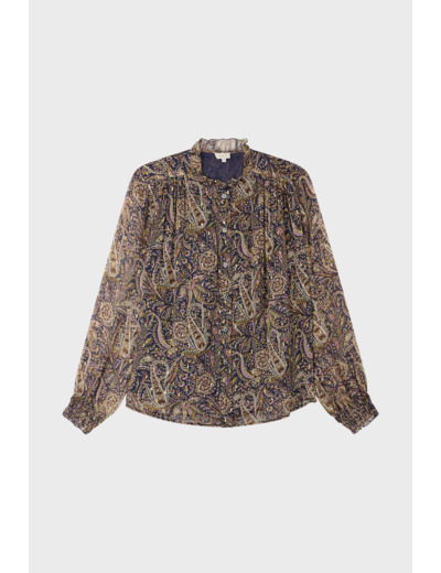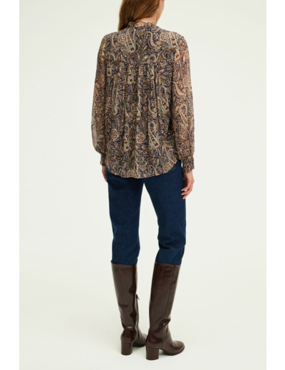 Sublimez votre quotidien avec cette blouse Pablo au motif cachemire délicatement rehaussé de lurex, pour une élégance discrète et raffinée. Une pièce facile à porter qui allie style et confort avec subtilité.