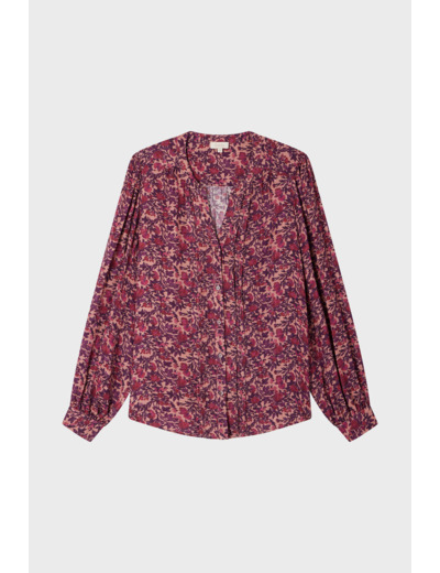 Conçue dans une coupe droite, cette chemise allie confort et style. Le col rond esprit tunisien et les fronces aux épaules et dans le dos créent un jeu de volumes harmonieux, tandis que les manches longues finies par des poignets à bouton rond soulignent une finition soignée. Le motif floral apporte une fraîcheur intemporelle, idéale pour dynamiser vos looks quotidiens ou professionnels.
