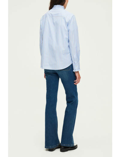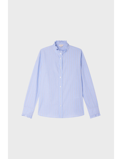 Confectionnée en 100% coton, cette chemise allie confort et style. Le motif à rayures souligne la silhouette tandis que les volants au col et aux poignets apportent une touche délicate et féminine. Les manches longues et l’emmanchure chemise garantissent une aisance parfaite, idéale pour une allure soignée du bureau à la ville.
