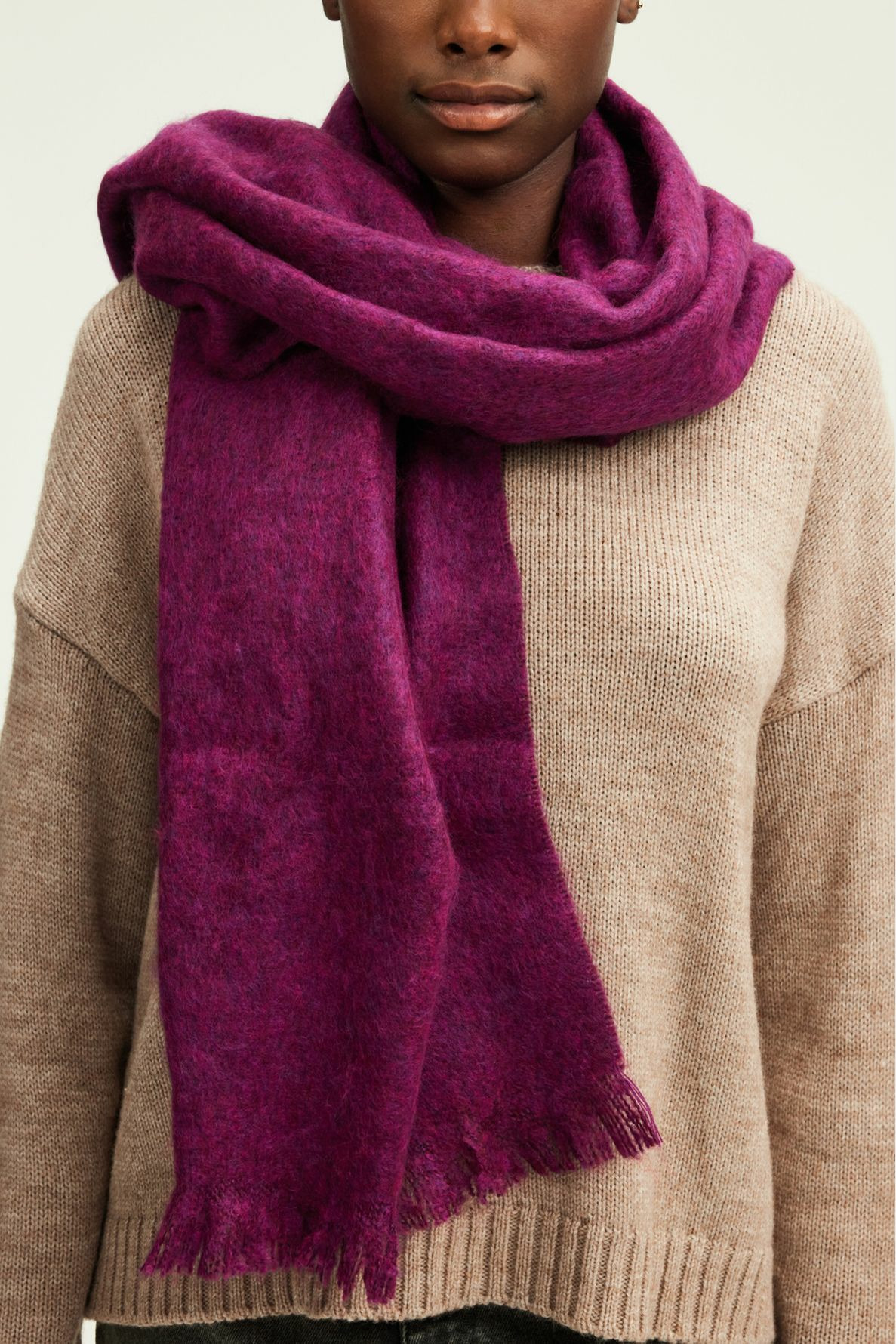 Matière : mélange contenant du mohair. Coloris : lipstick. Finitions : frangées. Dimensions non communiquées.