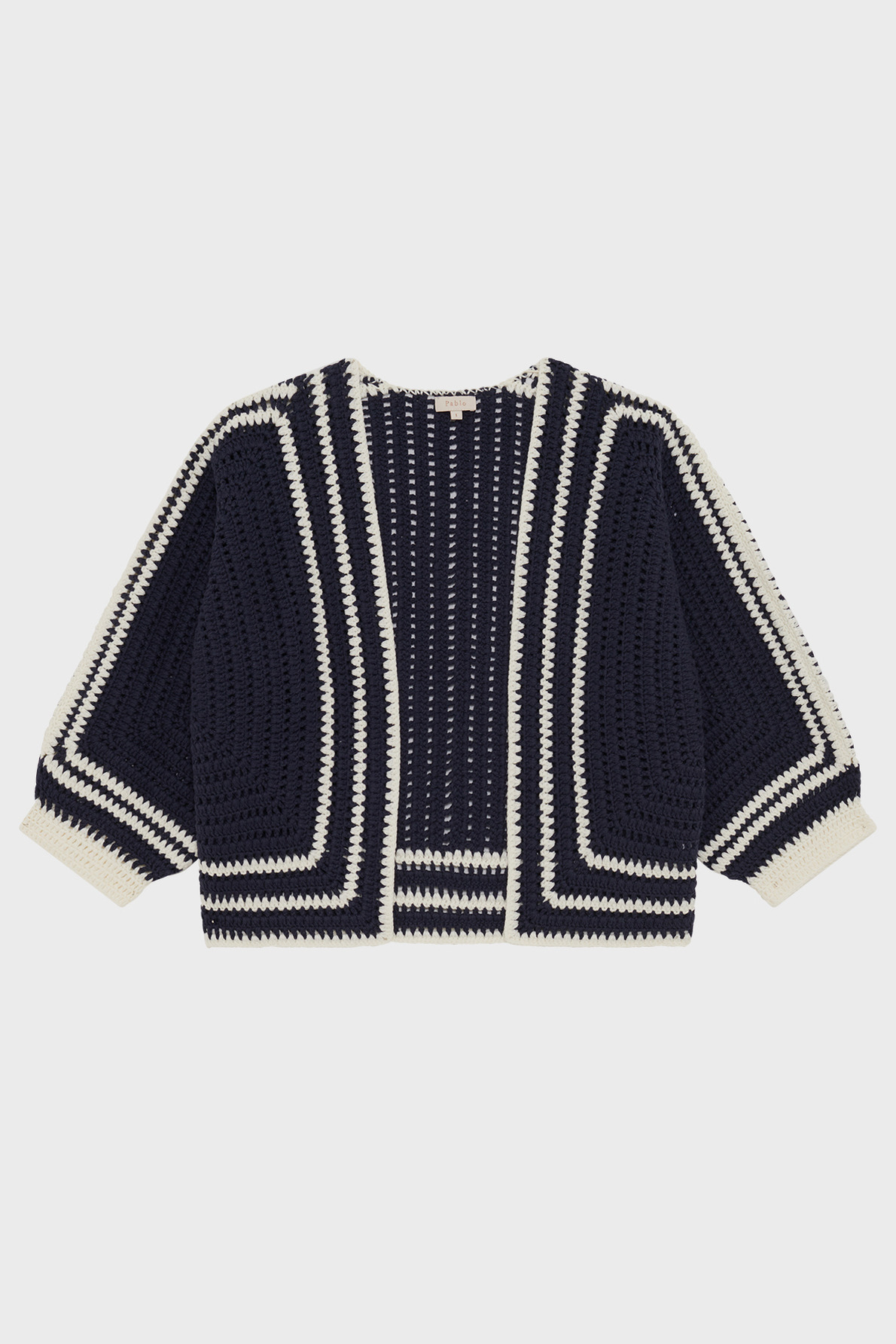 Adoptez l’élégance décontractée avec ce gilet large en coton mélangé signé Pablo. Sa maille crochet bicolore apporte une touche contemporaine à votre garde-robe, idéale pour sublimer vos looks en toute simplicité.