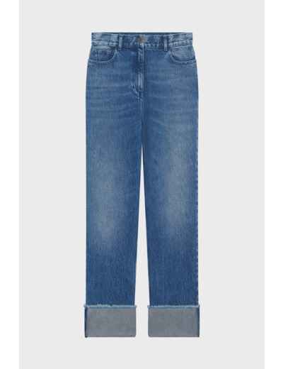 Confectionné en coton biologique, ce jean bleu uni se distingue par sa coupe droite et son design cinq poches, idéal pour un look casual sans effort. La longueur du pantalon et les revers apportent une touche contemporaine, tandis que la ceinture montée à passants garantit un maintien optimal. Polyvalent, il s’adapte aussi bien à vos journées actives qu’à vos sorties décontractées.