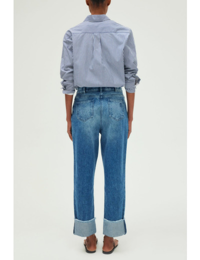 Adoptez l’allure décontractée et moderne avec ce jean droit à revers signé Pablo. Son esprit boyfriend et sa taille haute offrent un équilibre parfait entre confort et style affirmé.