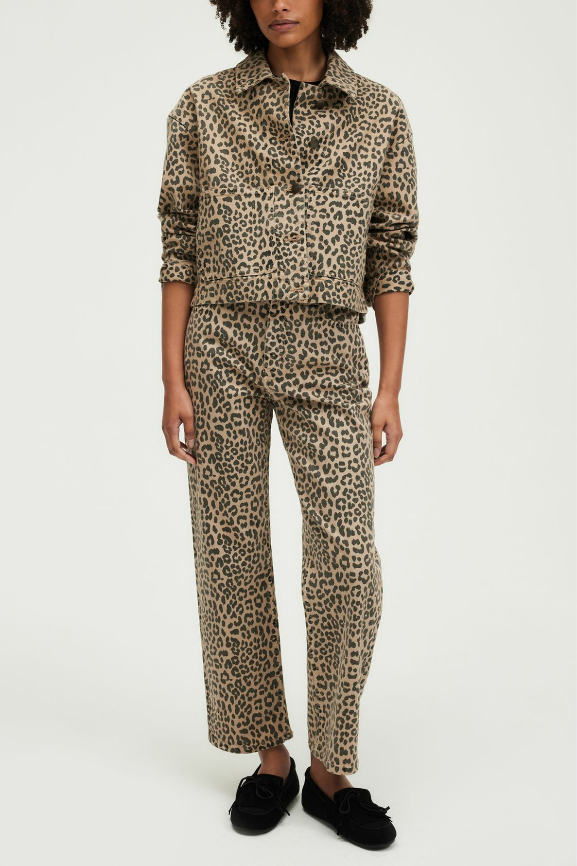 Affirmez votre style avec ce jean droit léopard, une pièce audacieuse qui dynamise instantanément votre garde-robe. Portez-le en total look avec la veste assortie ou osez le dépareiller pour un effet surprise maîtrisé.