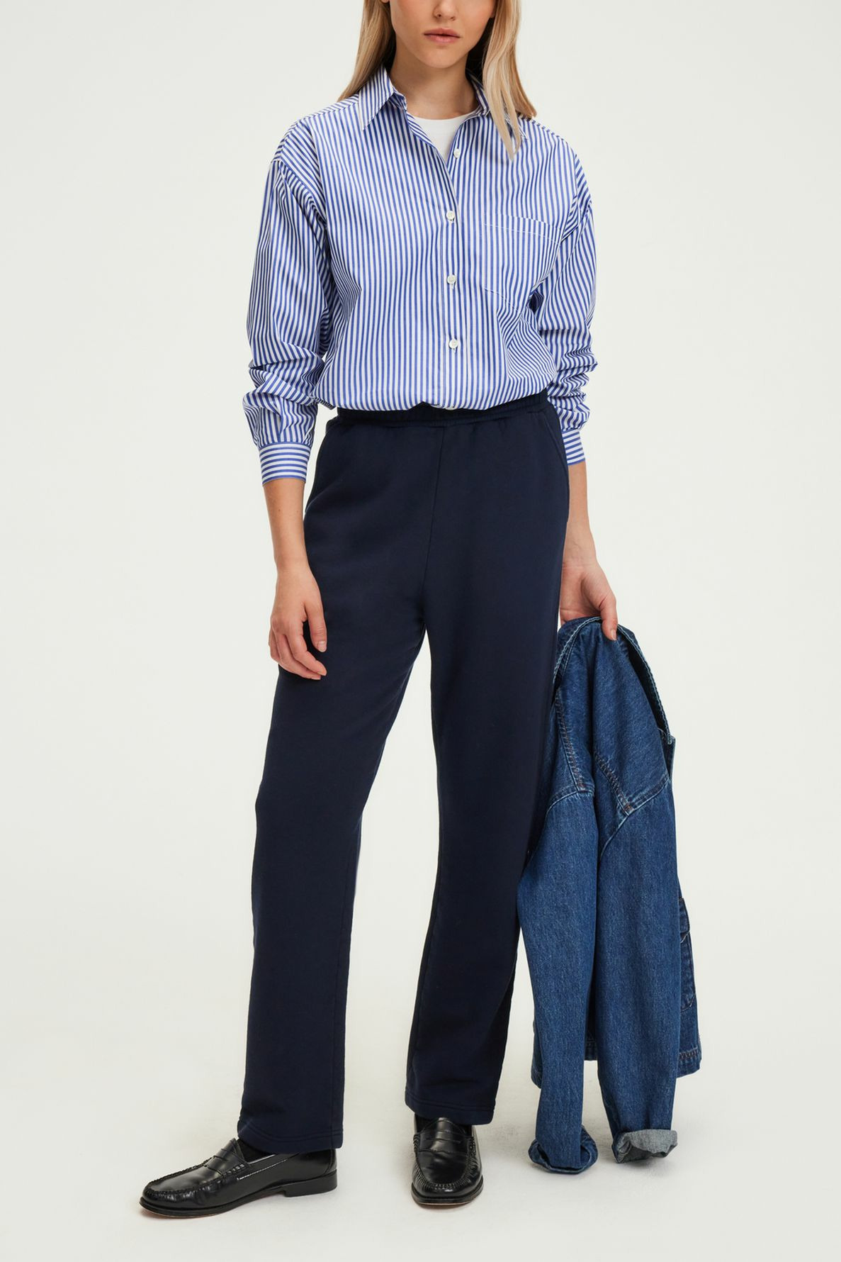 100% coton, intérieur en bouclette pour plus de douceur. Forme droite, taille élastiquée, poches en biais. La mannequin mesure 174 cm et porte une taille 38.